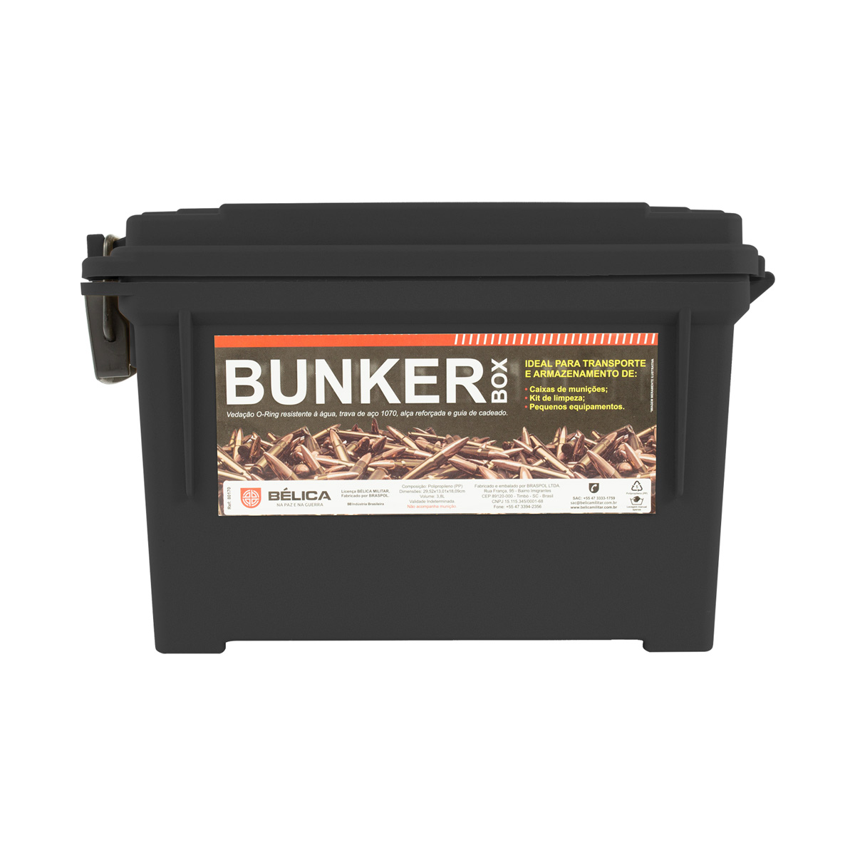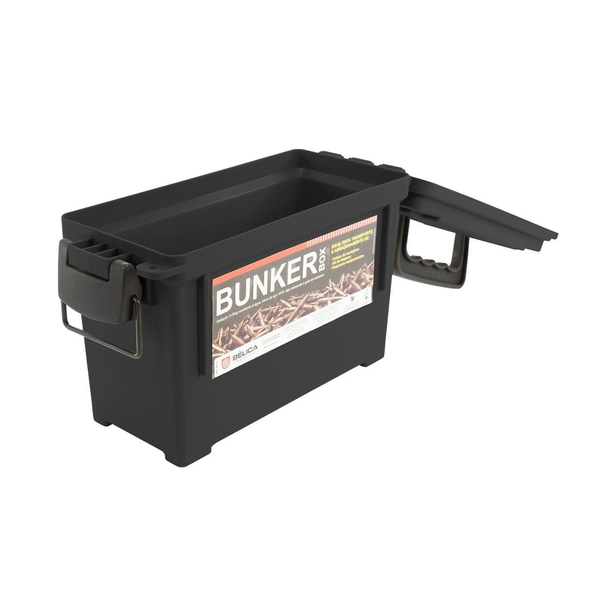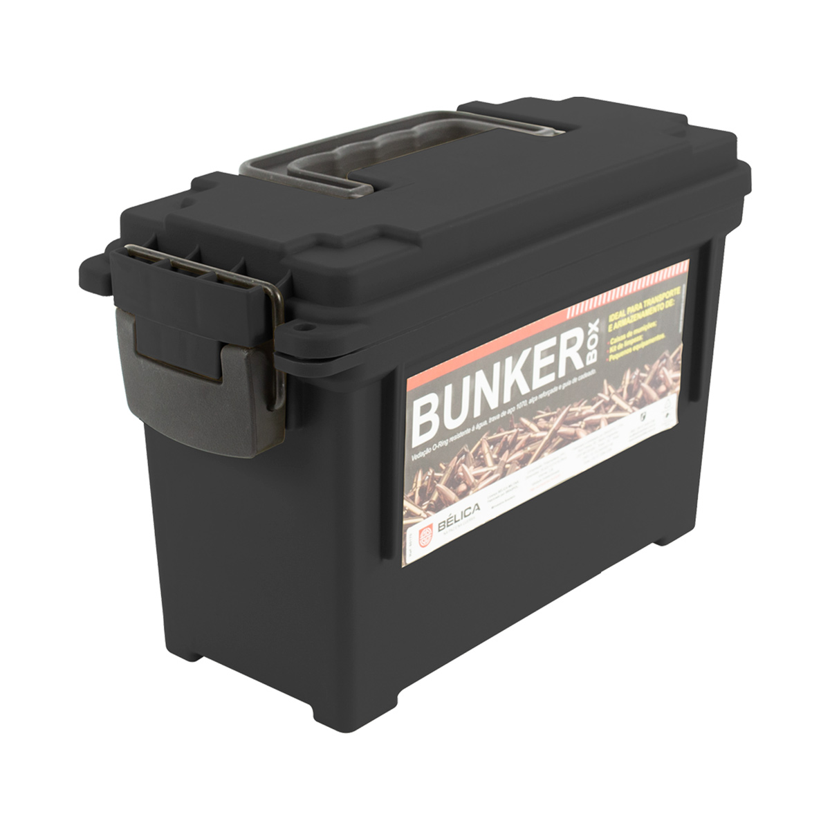 Transportar seus equipamentos e munições de forma segura e cheia de estilo é com a AMMO BOX da Bélica. Disponível também na cor verde aqui na LojaDaCarabina!