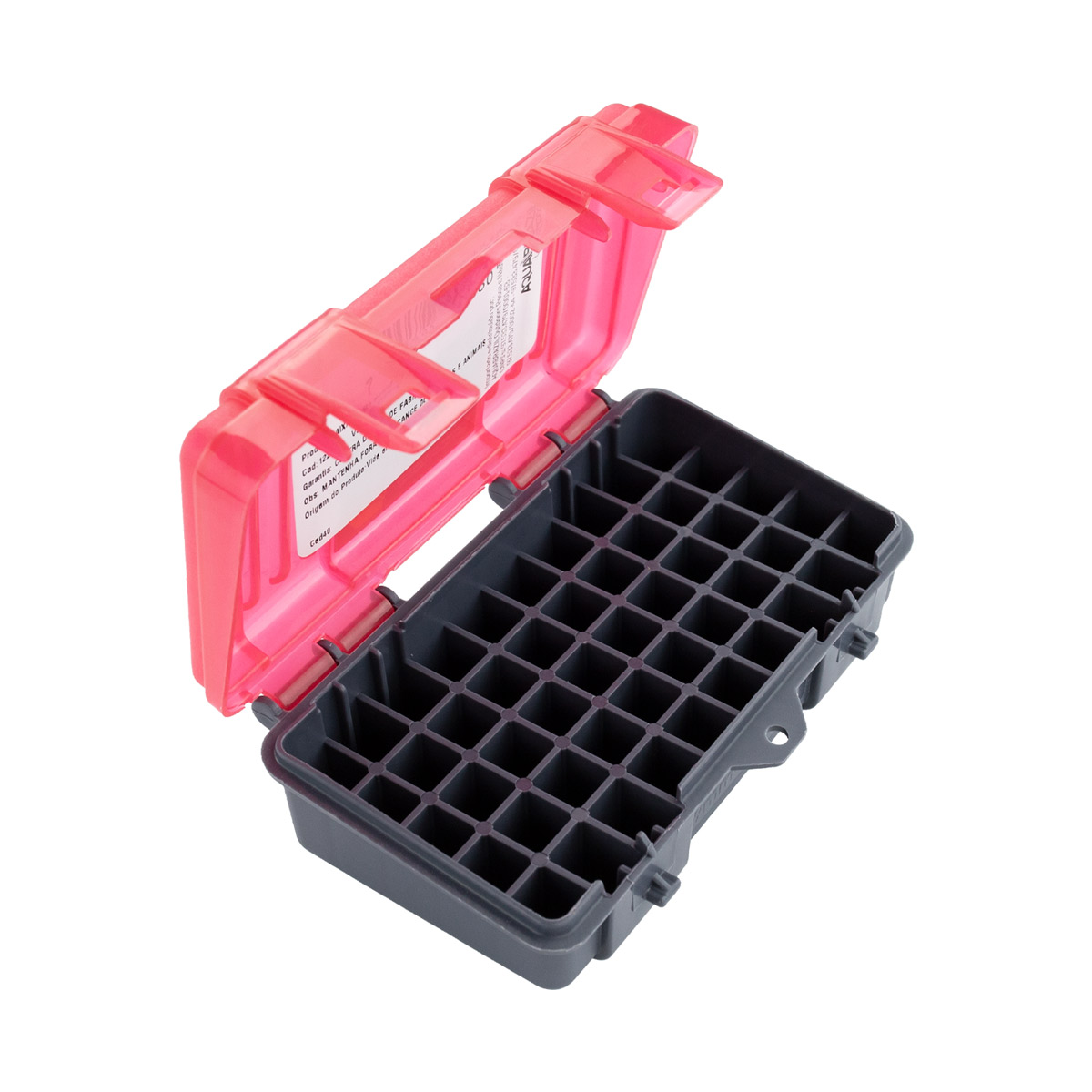 Conta com tampa flip top que permite acesso fácil e rápido as munições. Possui espaço para até 50 cartuchos, os slots são individuais e possuem excelente construção.