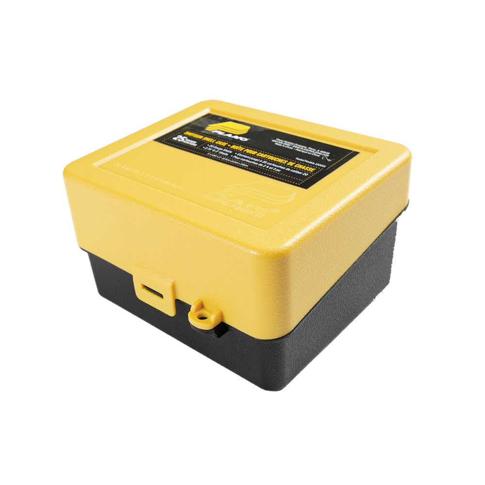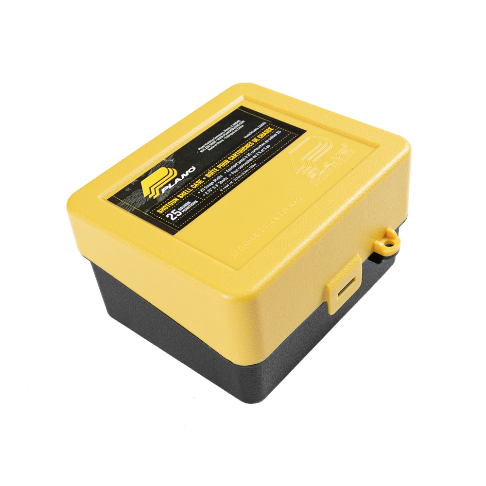Caixa para 25 cartuchos calibre 20 com 2,75 até 3 polegadas de comprimento.