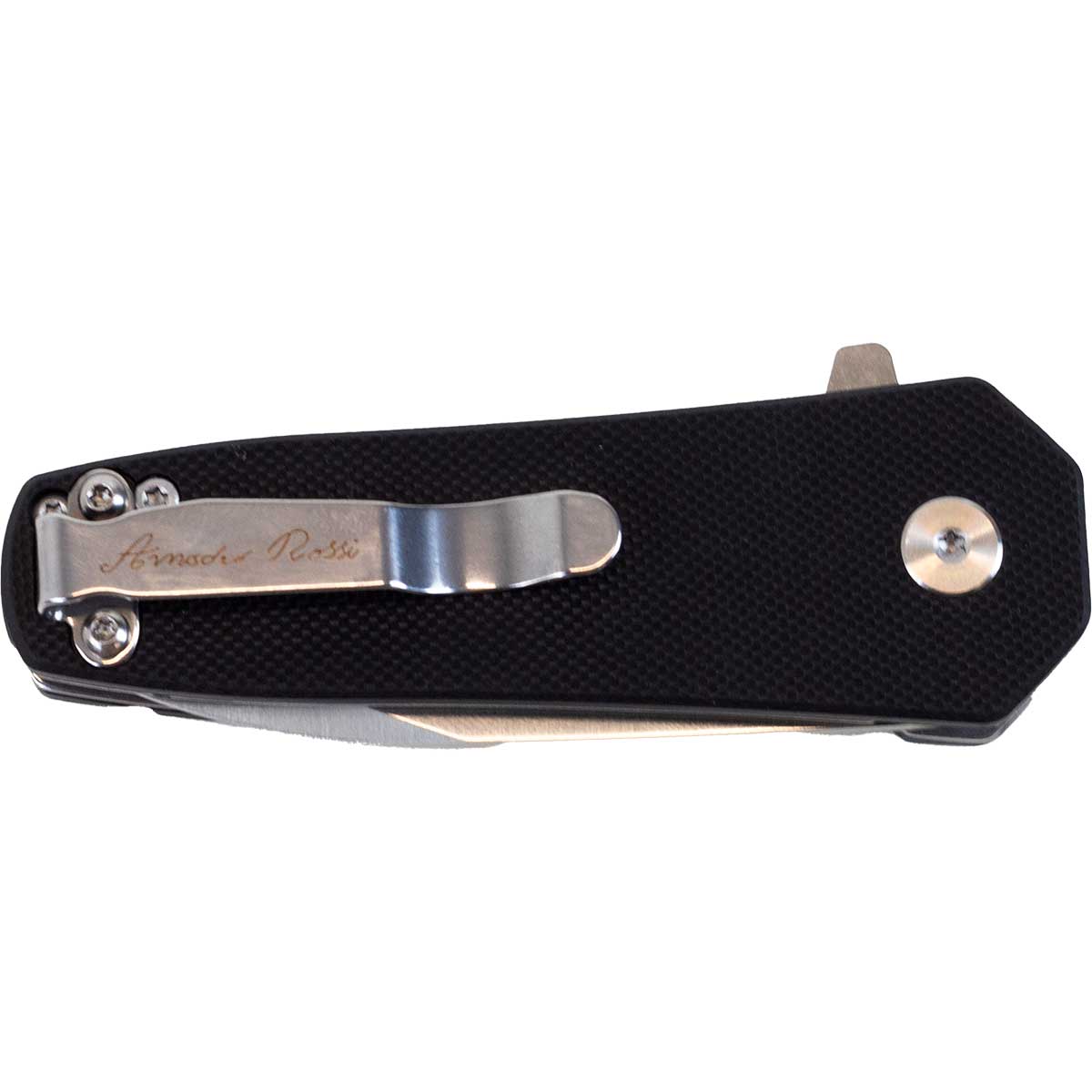 O Canivete Amadeo Rossi Mini Black é uma opção compacta e robusta para uso diário, unindo materiais de qualidade com um visual discreto na cor preta. O cabo em G10 oferece pegada firme e boa resistência ao uso, enquanto a lâmina em aço 440C entrega desempenho consistente em tarefas rotineiras, com boa retenção de fio e durabilidade.
