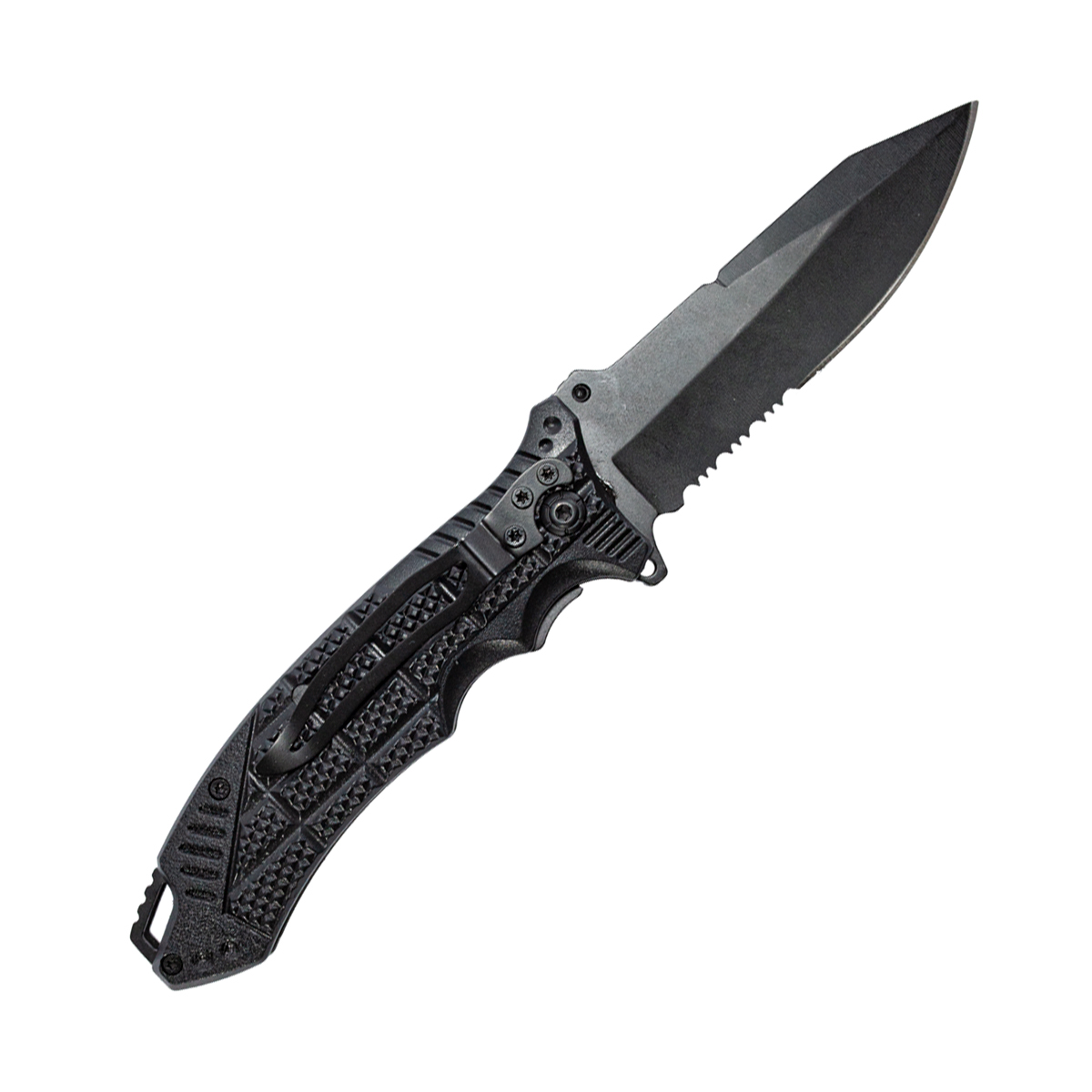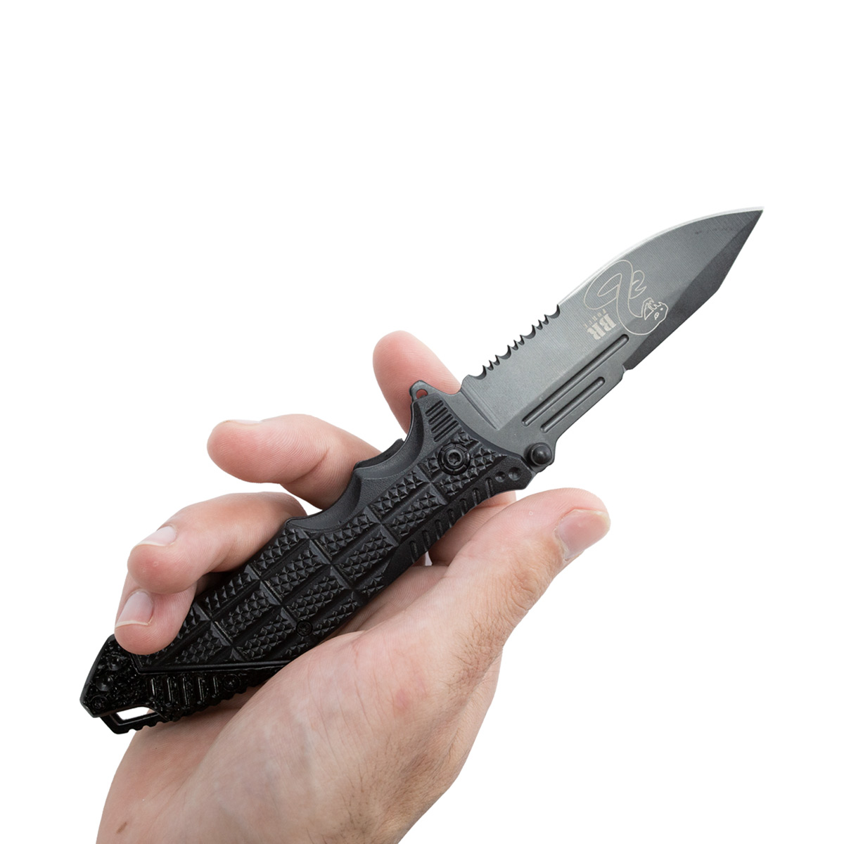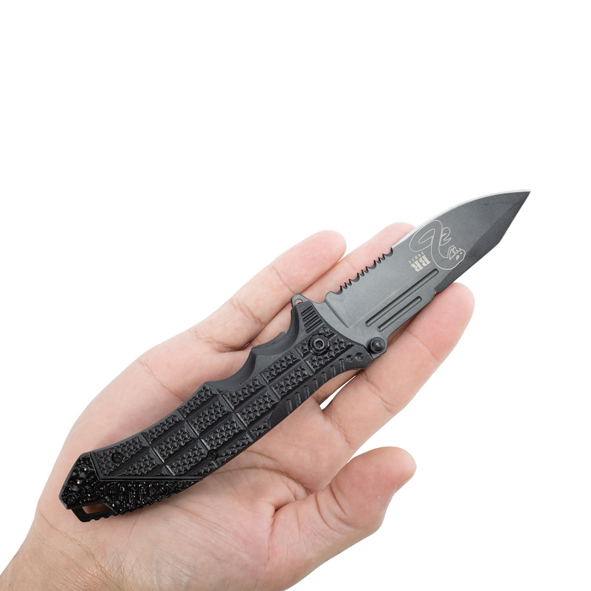 A Lâmina é lisa na ponta, tipo Drop Point, e no final possui serra, o canivete ideal para se ter em todas as situações. A lâmina deste canivete traz um corte preciso e ágil. É uma lâmina de altíssima resistência.
