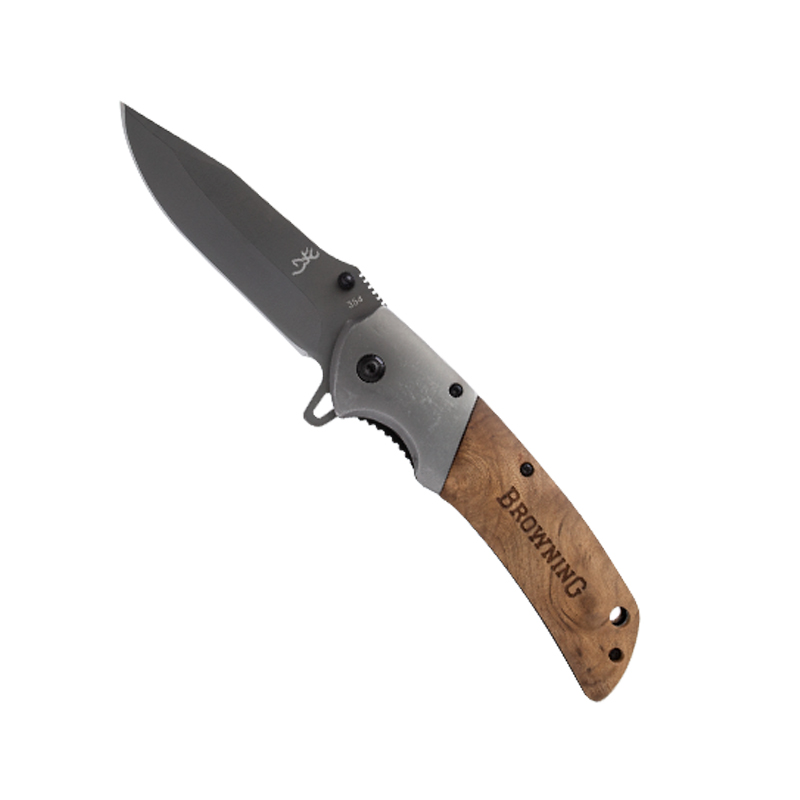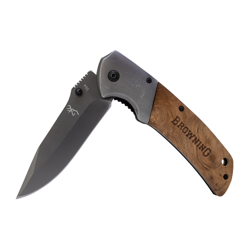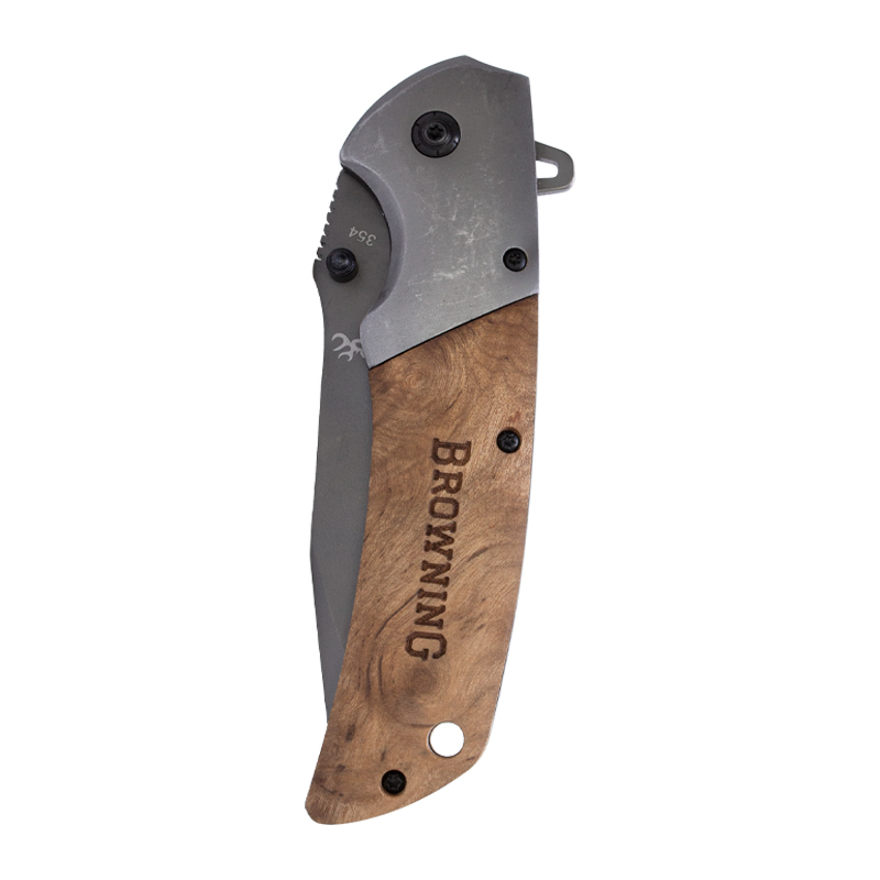 Canivete 354 com cabo em madeira, é um lindo canivete fabricado pela Browning com uma lâmina super resistente.