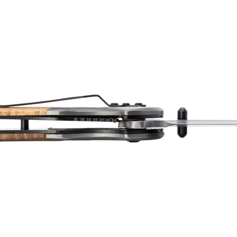 Possui trava Liner Lock, sendo assim, possível abrir e fechar a lâmina somente com uma mão.