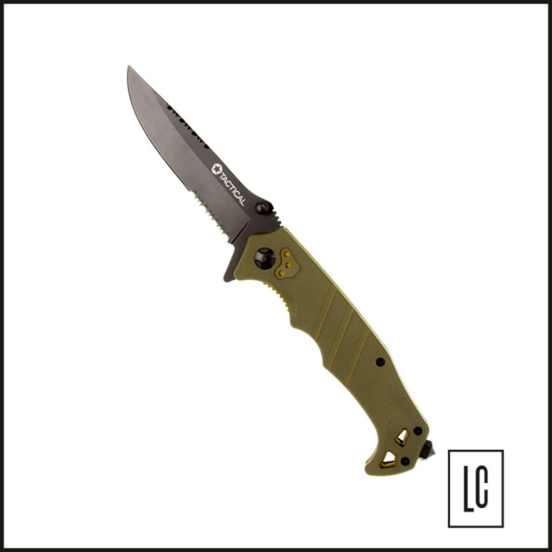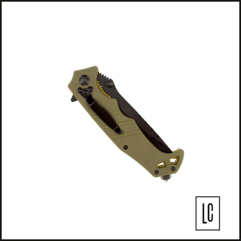 CANIVETE TACTICAL CALIBER possui lâmina em aço inoxidável 420, mecanismo para a abertura com apenas uma mão.