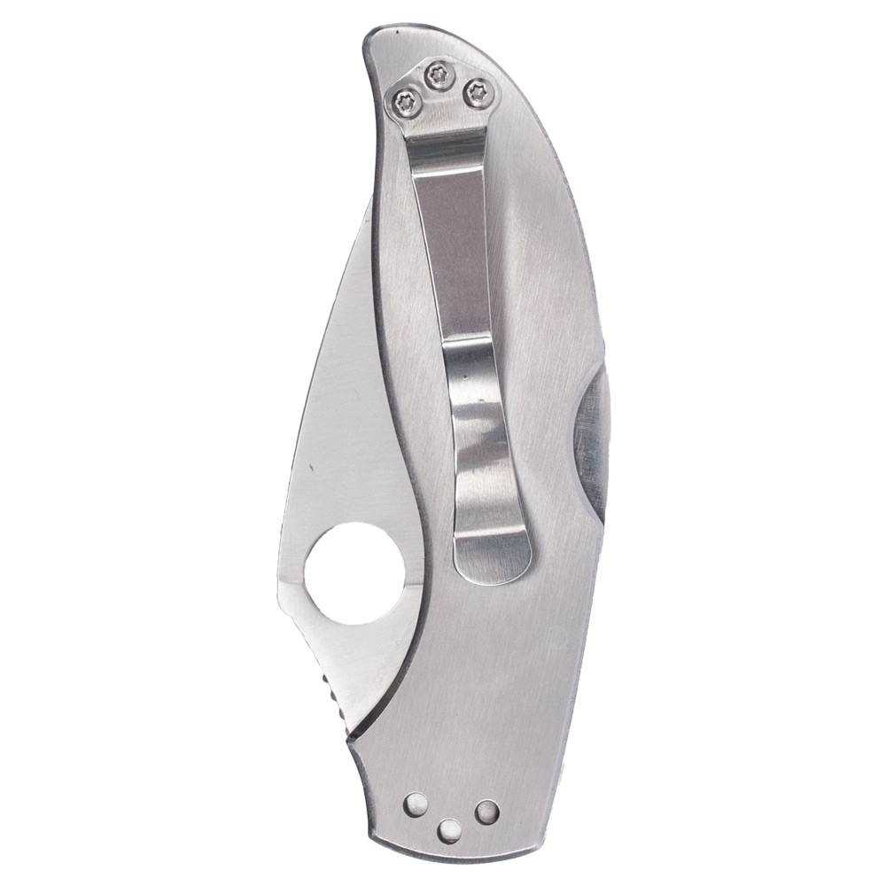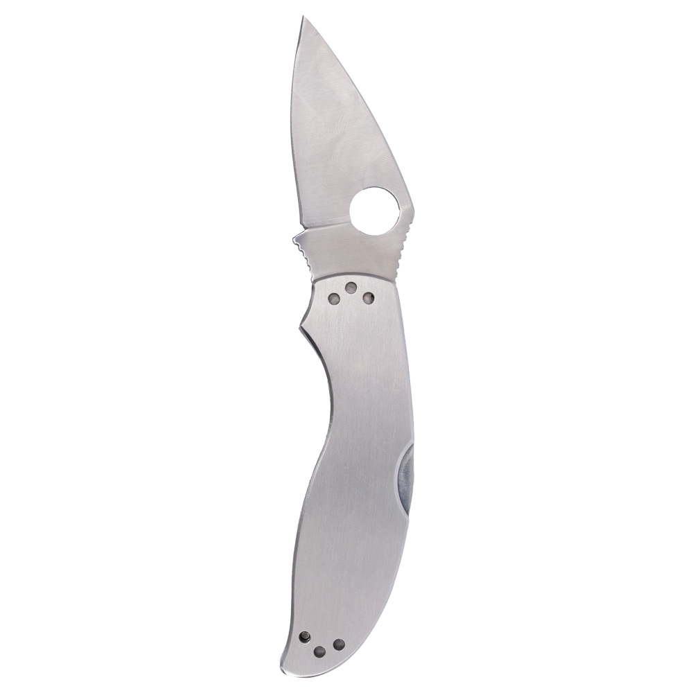 Possui lâmina fabricada em Aço Inox 440C, um material que já provou seu valor ao oferecer uma combinação excelente de retenção de fio e alta resistência à corrosão, tornando-o ideal para um canivete de uso constante. O seu formato é conhecido como Leaf Shape (formato de folha), uma variação do Drop Point que se destaca por ter uma "barriga" de corte longa e contínua e uma ponta muito forte o que a torna incrivelmente versátil para fatiar e realizar cortes de precisão.