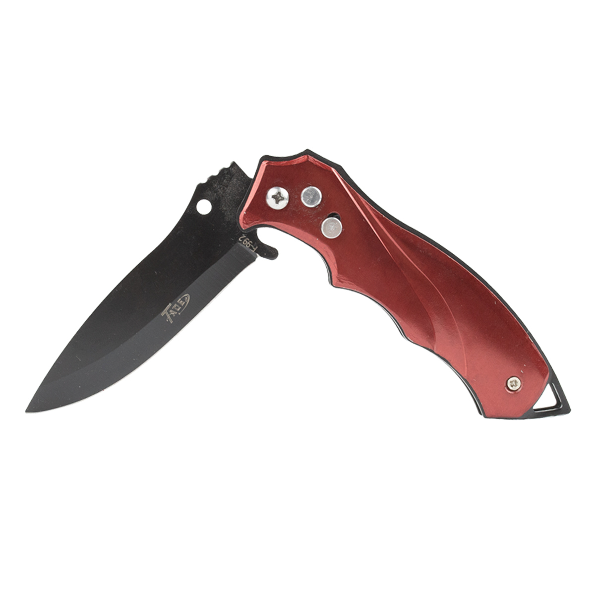 Canivete Tático F992 com abertura automática e lâmina em aço.