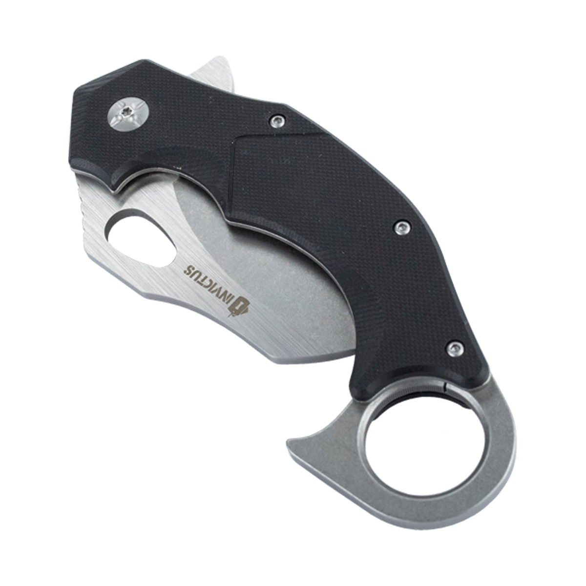 Canivete estiloso e com ótima ergonomia. Conta com alça de dedo no cabo para melhor manuseio.