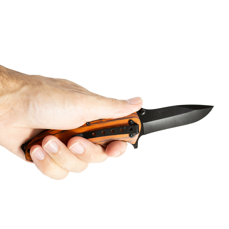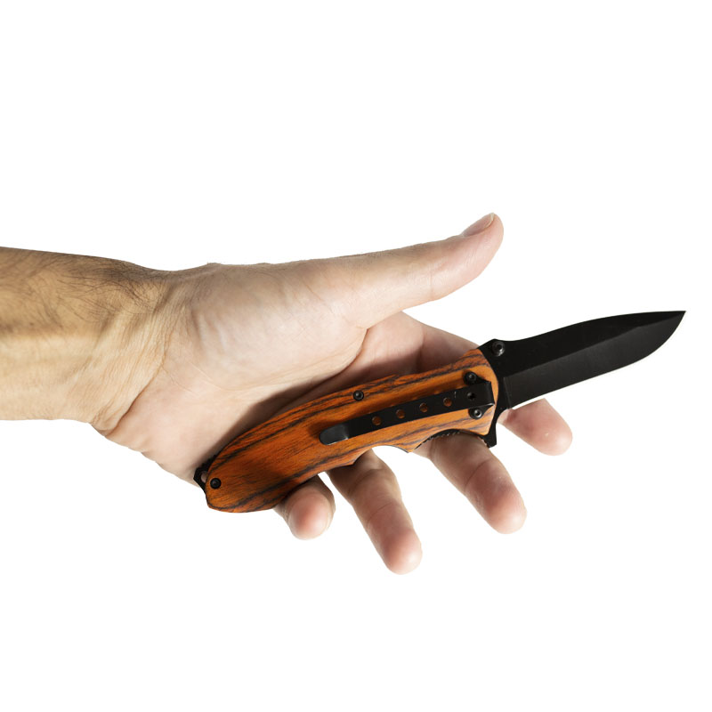 Cabo fabricado em madeira natural que entrega um lindo visual para esse Canivete Invictus.