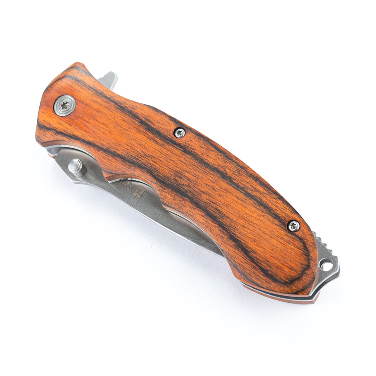 O Canivete Skara tem seu cabo ergonômico e feito em madeira.