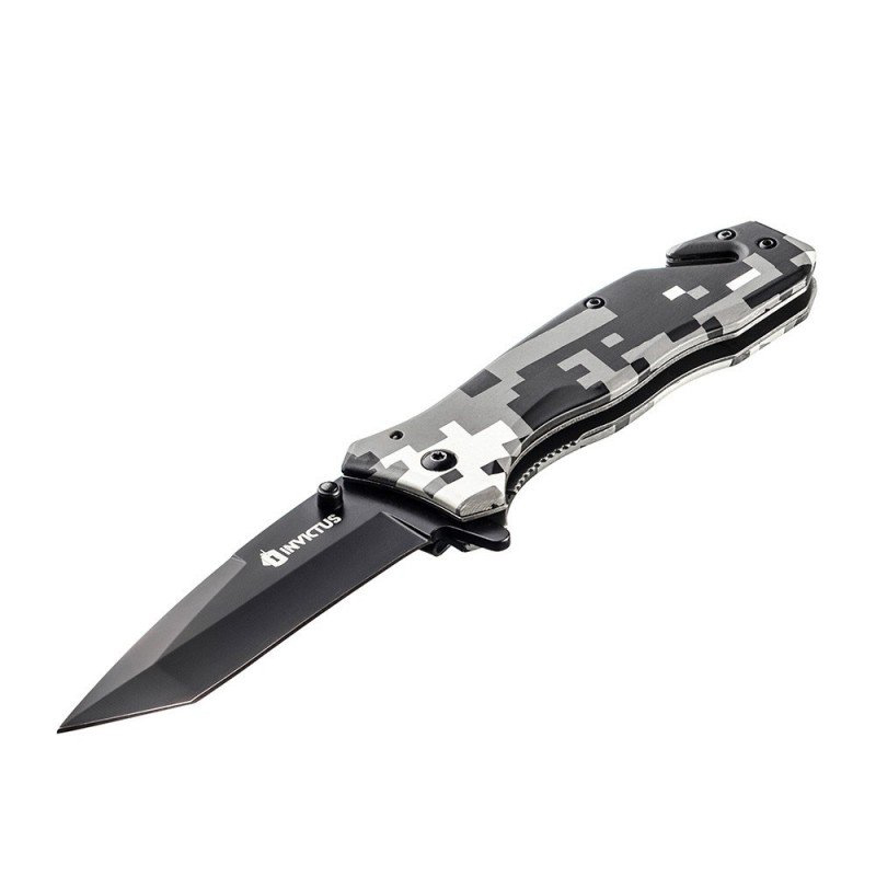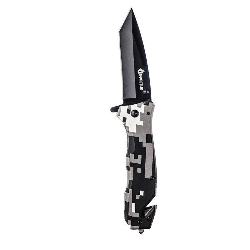 O canivete Phanton compõe o portfólio de canivetes táticos INVICTUS. Possui lâmina em aço inoxidável 420, de maior resistência a impactos e maior durabilidade, cabo em óxido de alumínio com camuflado digital urbano, clip tático, pomo metálico (quedra vidro), corta cinto no cabo e abertura fácil e rápida assistida por mola (spring assisted).