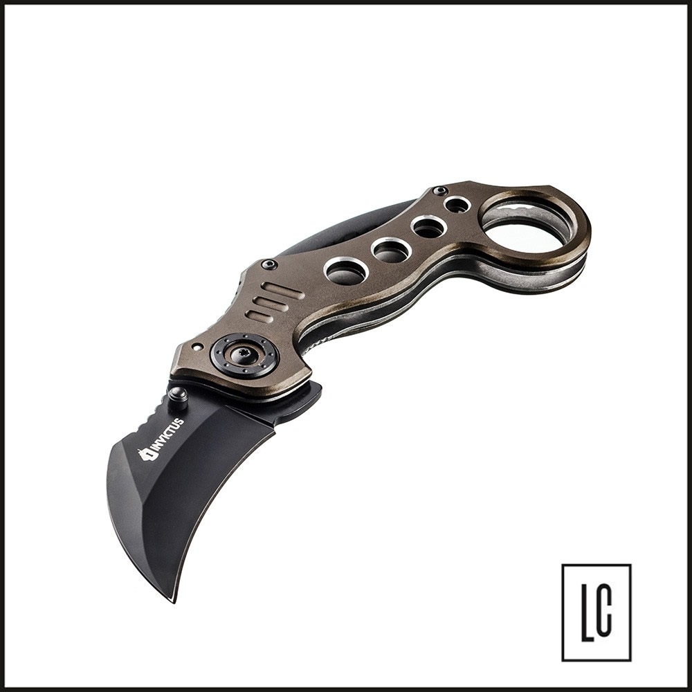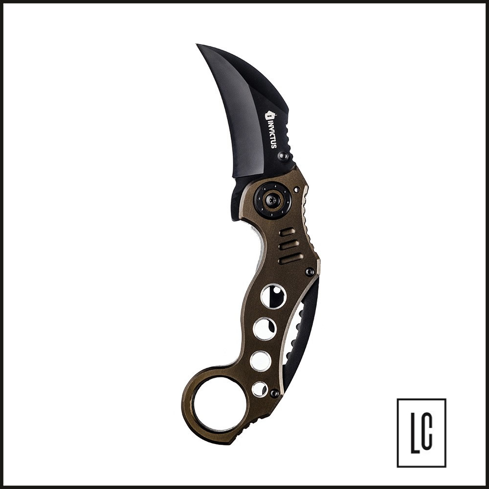 O canivete Shark II compõe o portfólio de canivetes táticos INVICTUS. Estilo Karambit, seu design valoriza a ergonomia. Possui lâmina em aço inoxidável 420, cabo em alumínio, clip tático e abertura fácil e rápida assistida por mola (spring assisted).