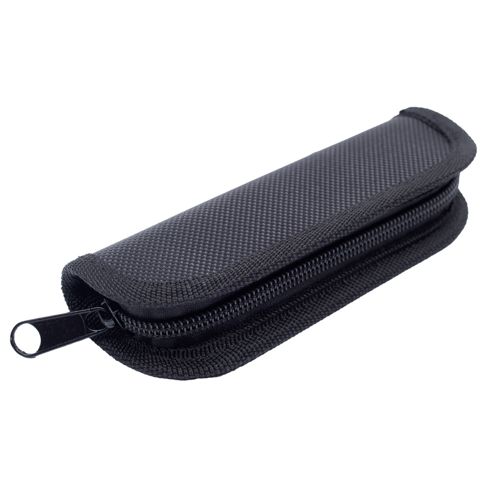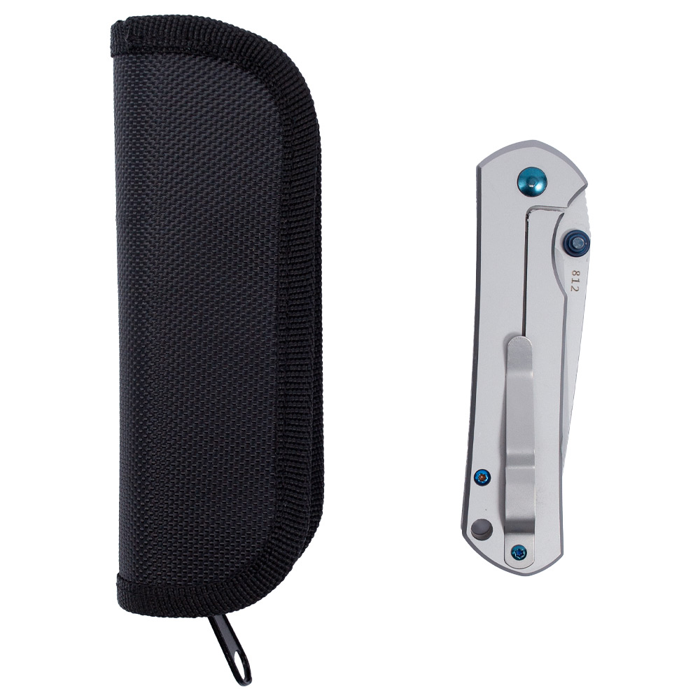 O canivete já vem com um clip de bolso (removível) e um prático estojo de nylon com zíper para transporte.