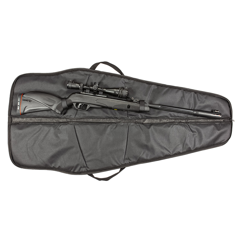 A Capa Magnum comporta uma carabina pcp com a luneta instalada, graças a seu amplo espaço de armazenamento, sendo 130 cm de comprimento e 30 cm de largura.