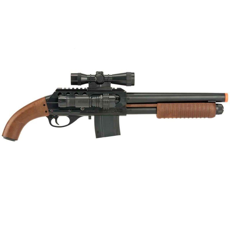 Shotgun de Airsoft indicado para CQB (Close Quarter Battle), modelo curto e confortável, se propões a ser uma excelente opção de arma backup para os jogos.