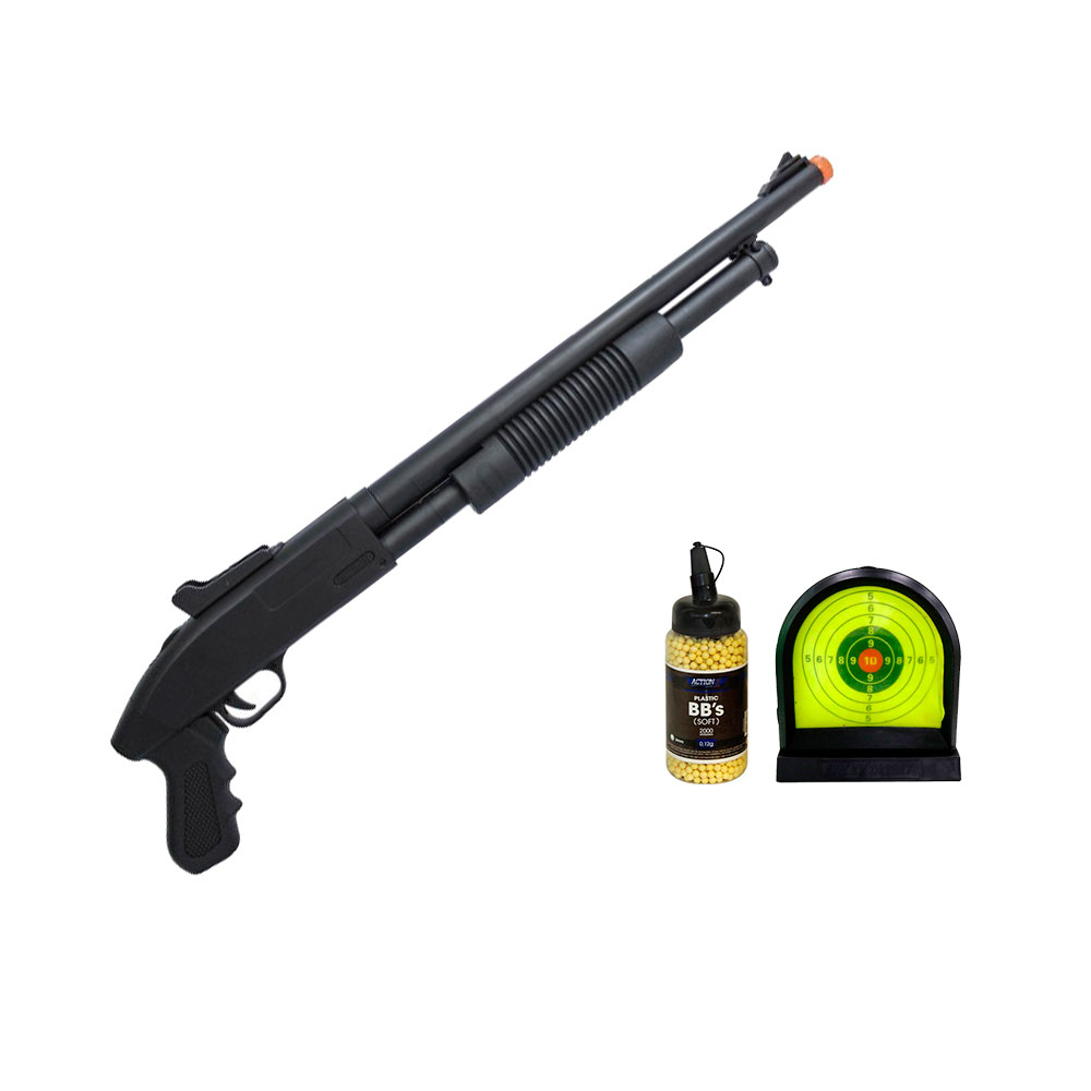 Carabina Airsoft Shotgun ZM61 é uma carabina com ação por mola disparando 1bb's por vez. Maior estabilidade baseada em seu design. Possui reservatório para até 100bb's, punho ergonômico e miras fixas.