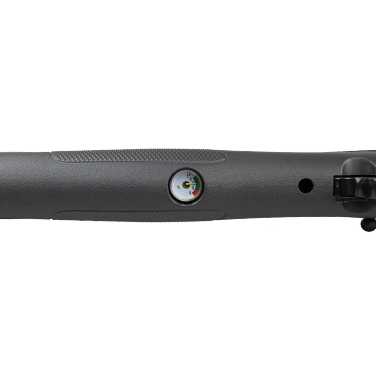 Conta com manômetro integrado para controle da pressão. O cilindro de ar tem um volume de 136cc e é fixo. A pressão máxima de trabalho é de 200 bar (3000 psi).