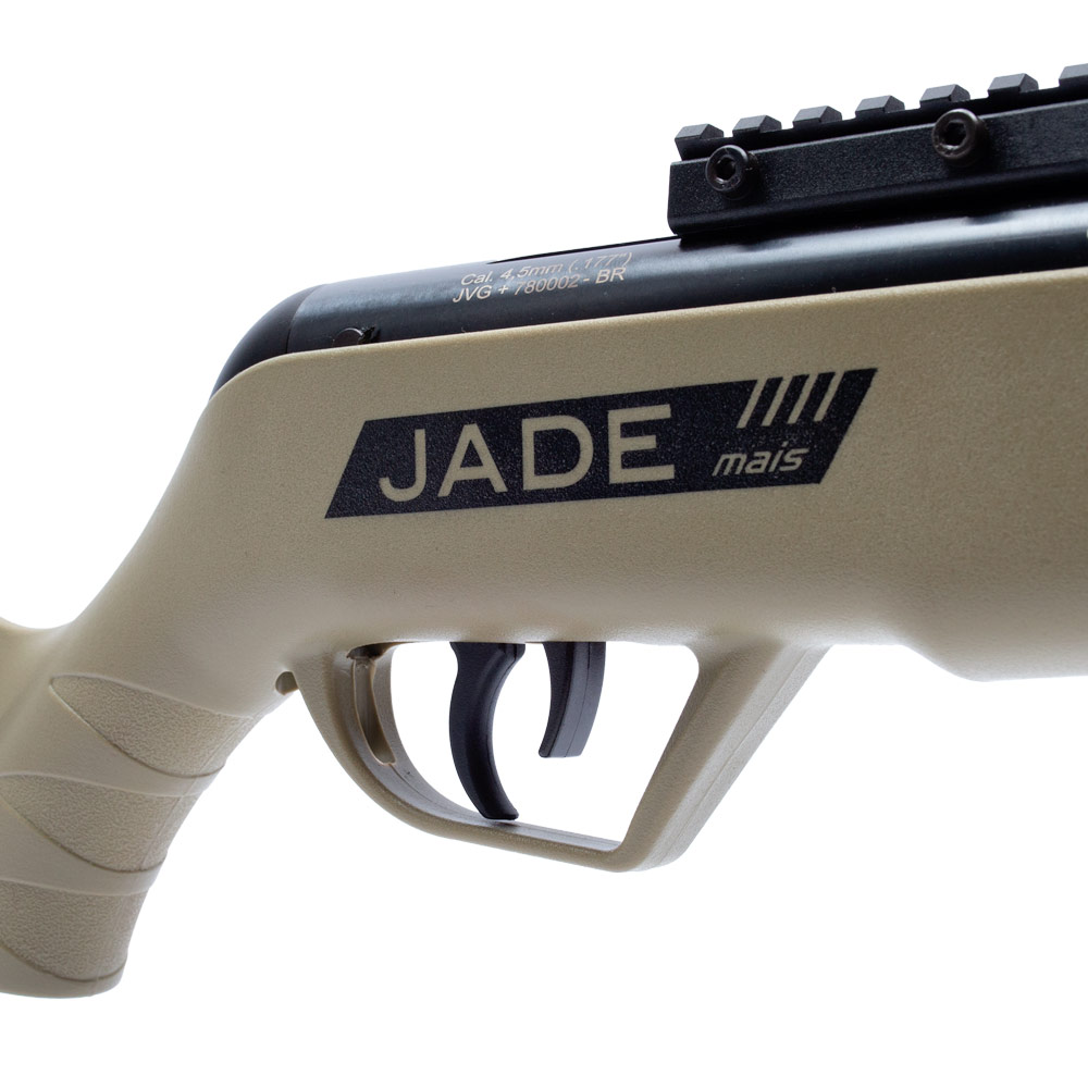 A Carabina Jade Mais é para surpreender. Possui todos os atributos da Jade. Conta ainda com gatilho ajustável com ajuste de curso que possibilita aumentar ou diminuir a sua trajetória, essa caracteristica permite a customização do gatilho e confere ao atirador maior controle nos disparos que resulta no ganho de performance.