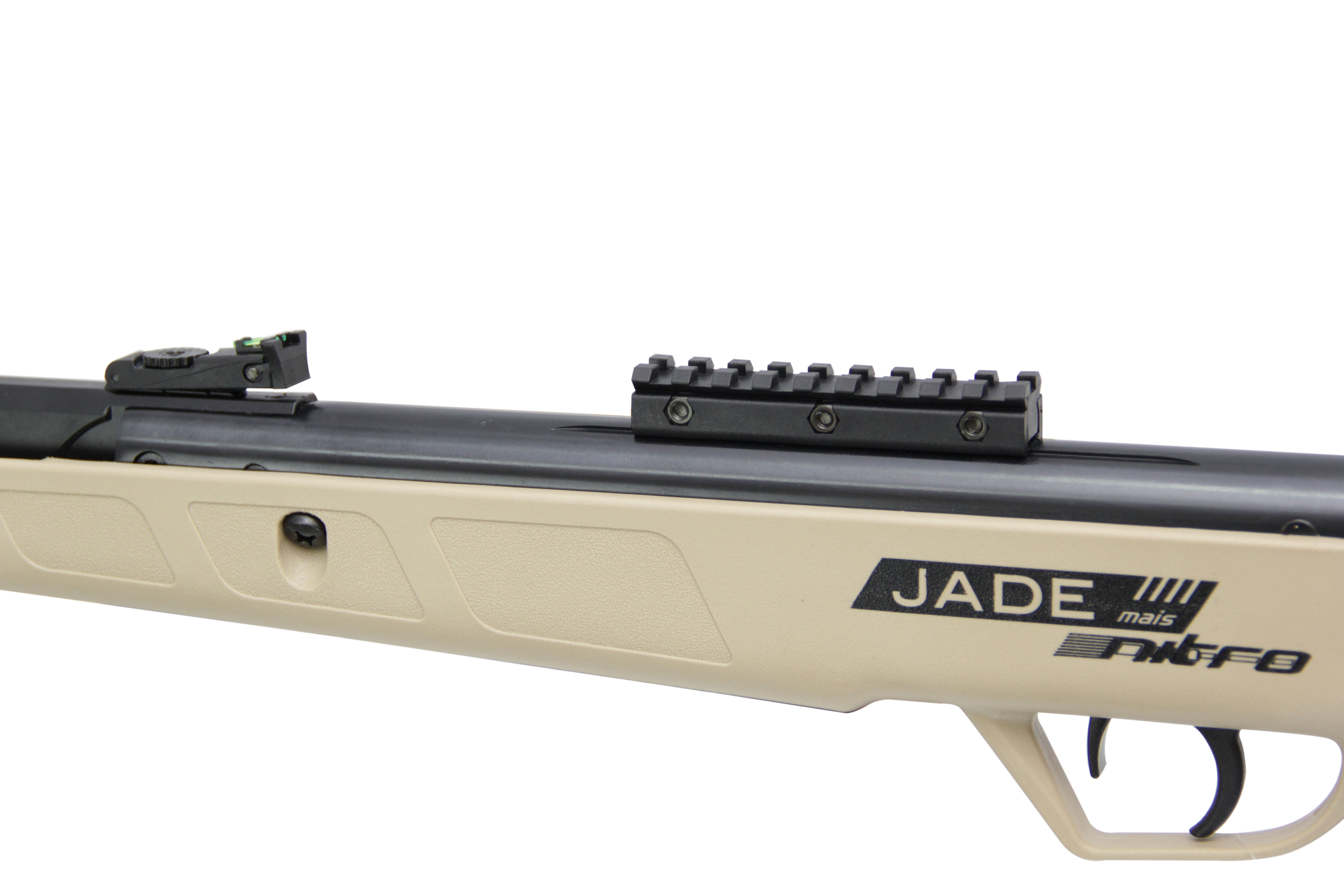 A Carabina Jade Mais é para surpreender. Possui todos os atributos da Jade. Conta ainda com gatilho ajustável com ajuste de curso que possibilita aumentar ou diminuir a sua trajetória, essa caracteristica permite a customização do gatilho e confere ao atirador maior controle nos disparos que resulta no ganho de performace. Conta também com trilho picatinny que possibilita o acoplamento de diversos tipos de acessórios ópticos em padrão universal e suporte para bandoleira integrado a coronha. Sua coronha é arrojada com guarda-mato integrado e grip antiderrapante. Possui sistema de segurança que impede o disparo com cano aberto, seu cano possui acabamento sobreinjetado que protege sua cabarina contra a oxidação, seu gatilho possui trava de segurança acoplada. Com fibra óptica e alça de mira com regulagem micrometrica vertical e horizontal, massa de mira e túnel de proteção removíveis.
