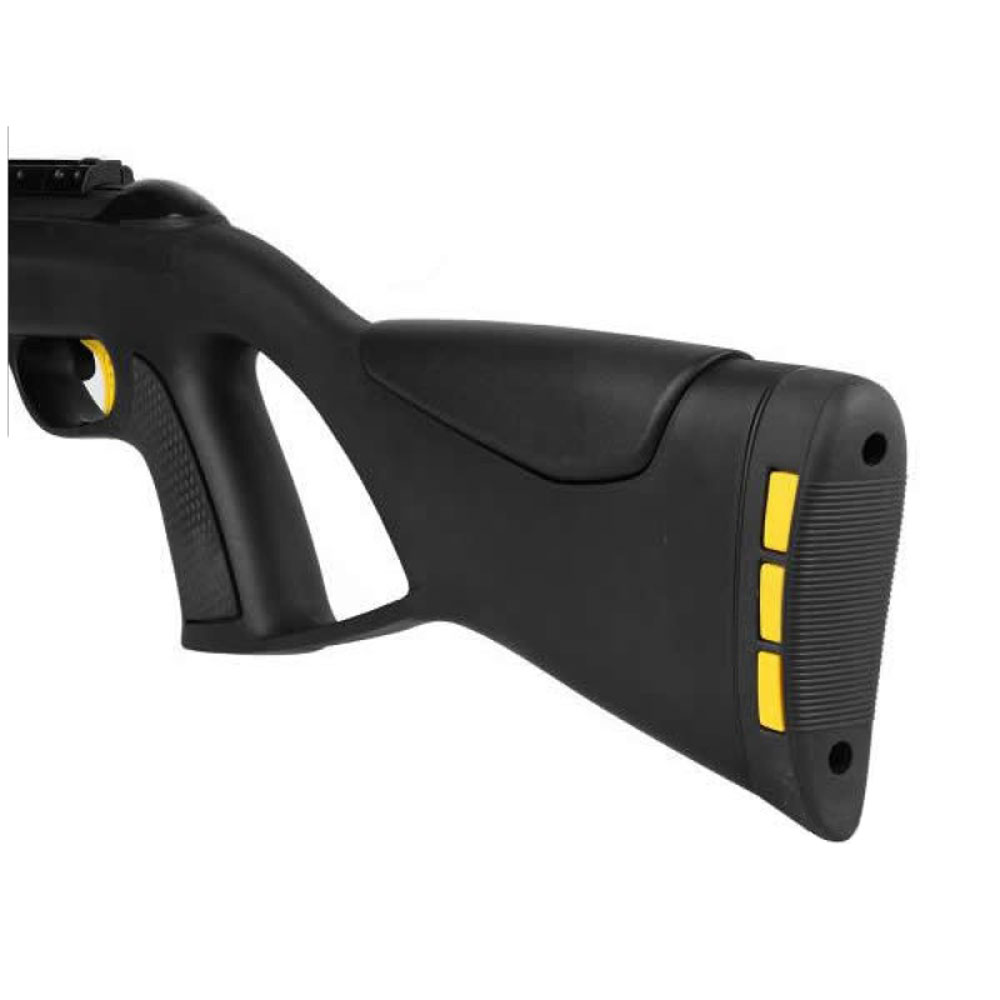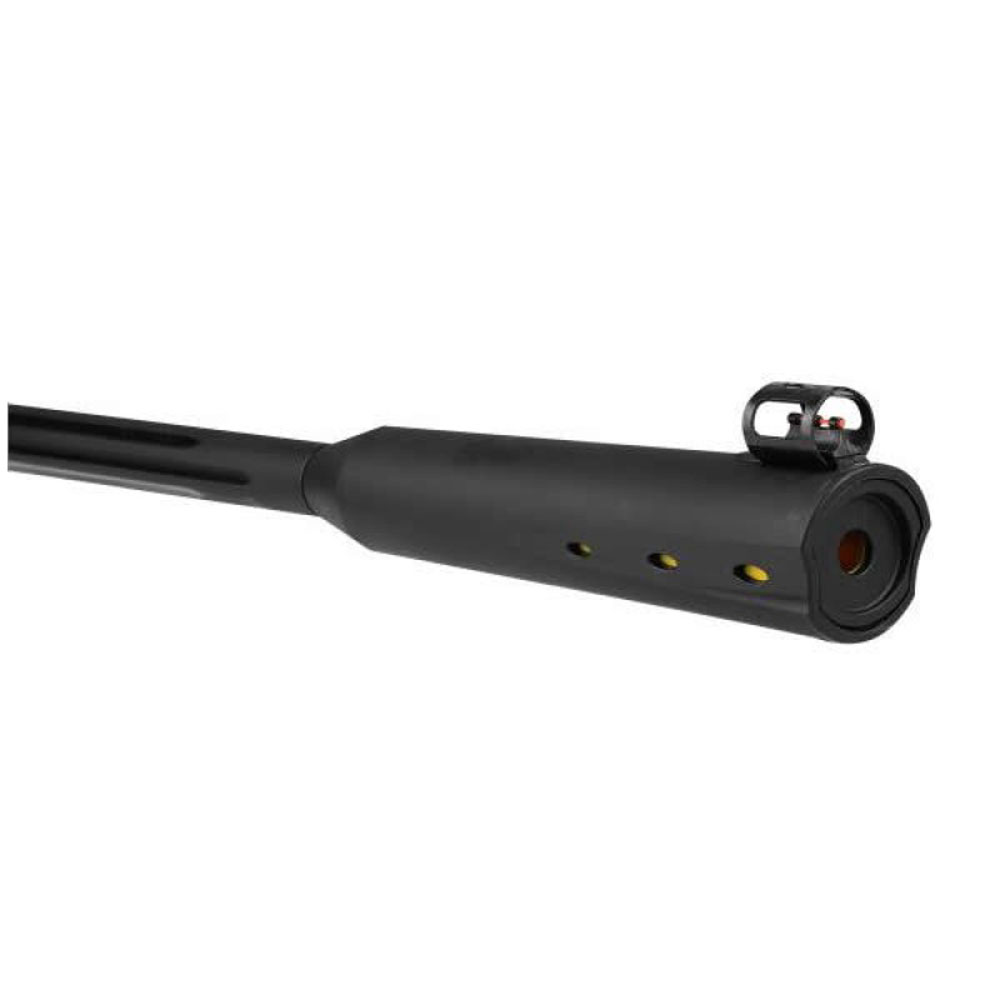 Esta carabina de pressão é avançada em desenho e ergonomia, com coronha sintética ambidestra com encosto de bochecha ajustável e supressor de som integrado ao cano que reduz 52% do ruído pós disparo.