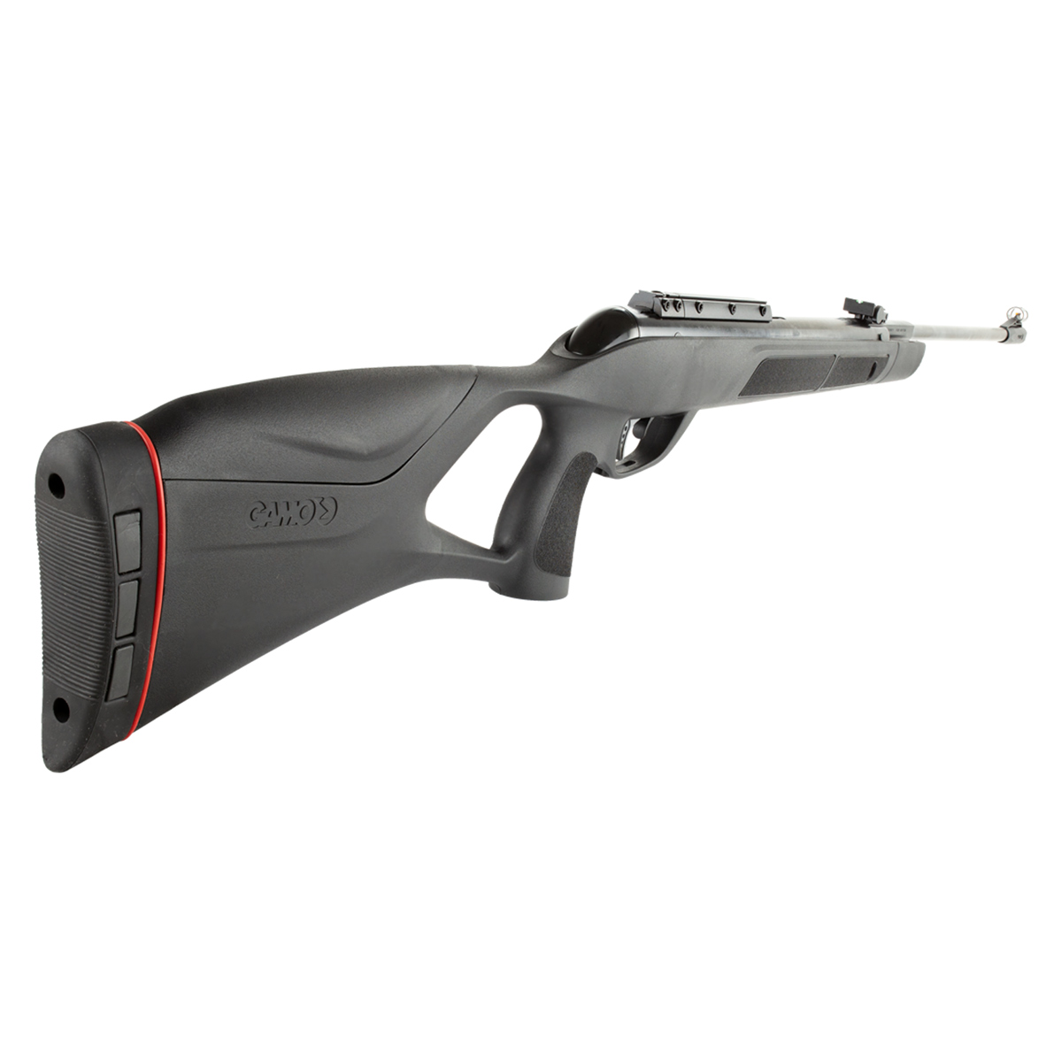 A Carabina de Pressão G-Magnum 1250, possui coronha ambidestra vazada em polímero, proporcionando um equipamento leve e robusto.