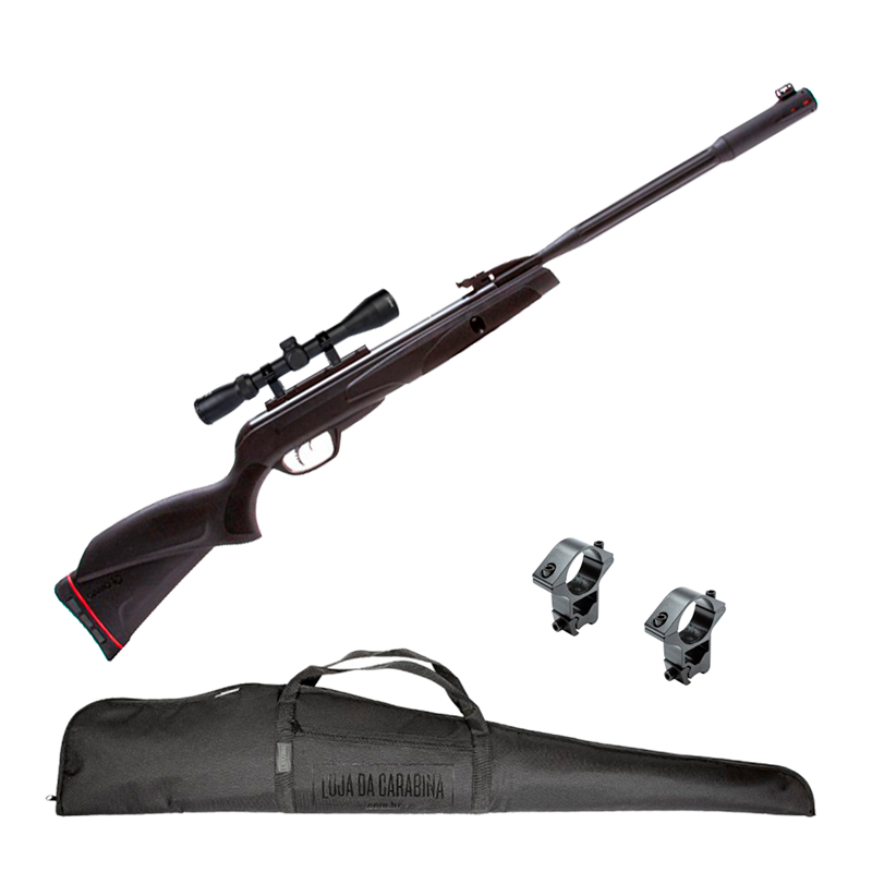 Kit com a Carabina Gamo Black Fusion 5.5mm toda desenhada em polímero de alta qualidade na cor preta. Com velocidade de em média 245/ms, possui um agrupamento totalmente satisfatório e alta potência. Também possui um sistema SWA na soleira para melhor adaptar a coronha no seu corpo facilitando o manuseio no momento do disparo e gatilho CAT que possibilita fazer ajustes no mesmo. O combo contém também uma Luneta Thunder Outdoors SFP 3-9x40 para tiros de melhor precisão, um Mount 11mm Rossi para acoplar a luneta e uma Capa LC para armazenamento da carabina com a luneta.