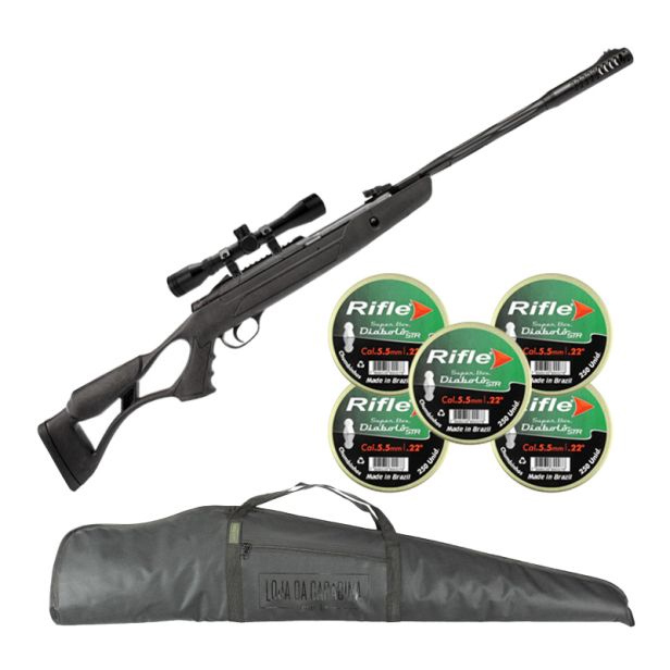 HATSAN AIRTACT ED CARABINA DE PRESSÃO + LUNETA ROSSI + CHUMBOS + CAPA