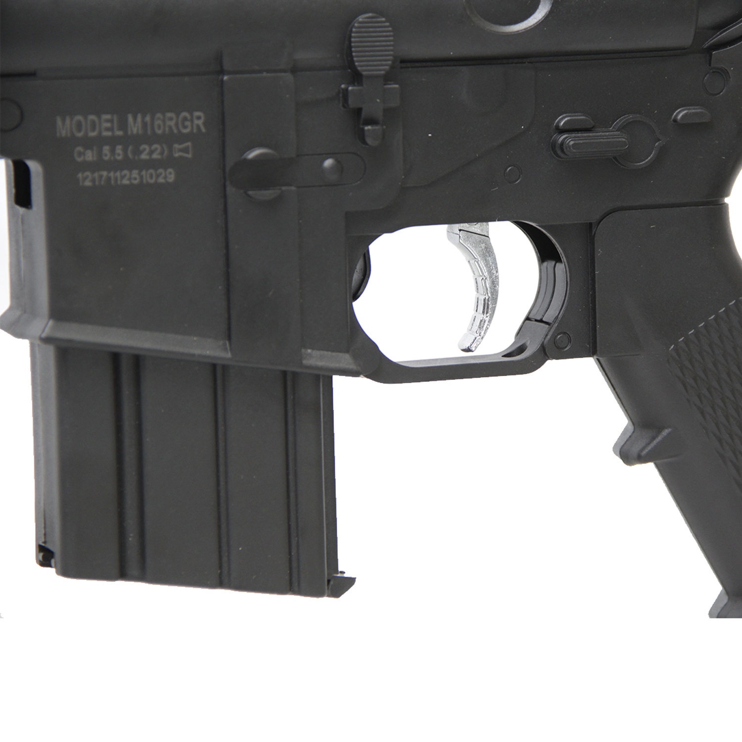 A Carabina de Pressão M-16 Rossi, é resultado de um projeto desenvolvido pela engenharia da Rossi em parceria com a SAG. Carabina 5.5mm na versão equipada com Gás RAM.