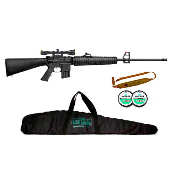 Acompanha capa para transporte seguro da sua carabina, 2 latas de chumbinho e bandoleira.