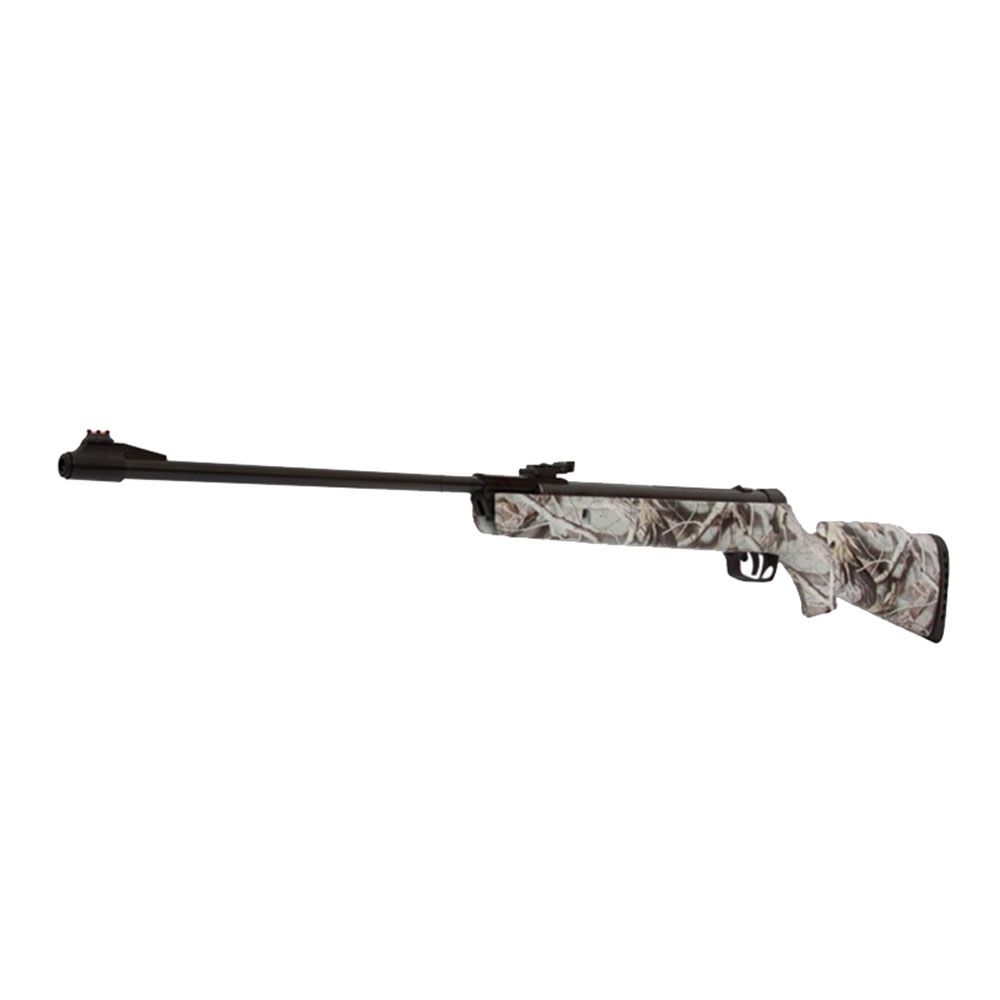 A Carabina de Pressão Gamo Big Cat 1000 com design Camuflado é construída em polímero com coronha ambidestra e cano raiado para maior precisão no disparo.