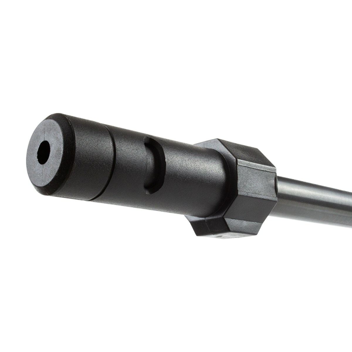 Possui cano raiado de 19 polegadas, trilho nas laterais e trilho superior, gatilho de metal.