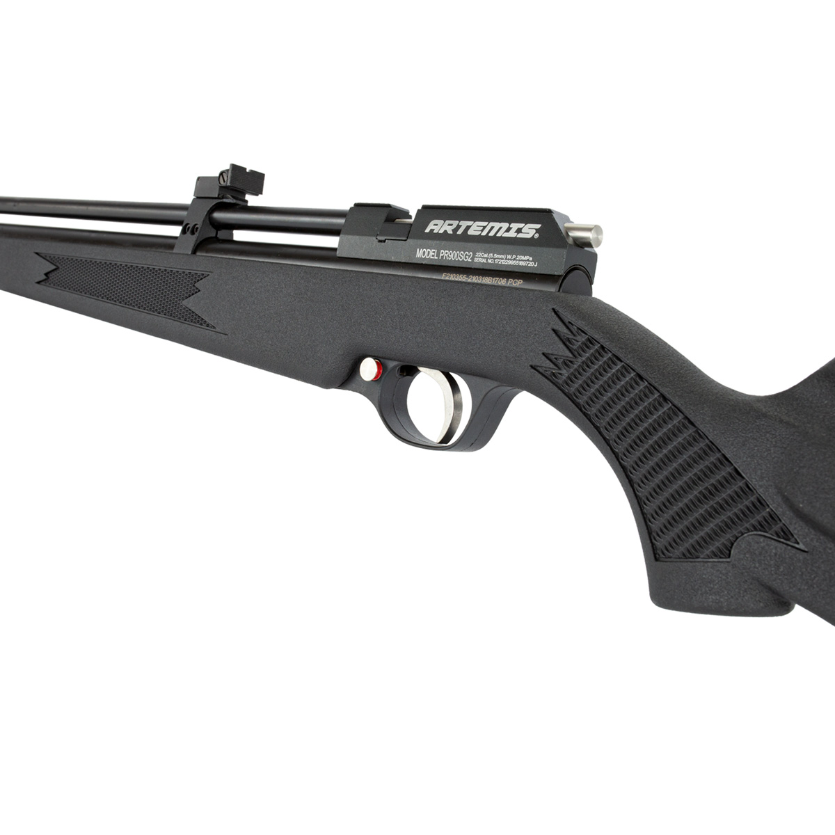 A PR900 é um modelo de carabina PCP que está disponível na versão sintética, representada pelo S (Synthetic) em PR900S e na versão madeira, representada pelo W (Wood) em PR900W. O G2 no modelo representa a segunda geração do modelo PR900 que agora conta com válvula reguladora automática, que torna os tiros mais homogêneos, constantes e uniformes. Essa tecnologia também aumenta a autonomia de disparos da carabina, reduzindo o desperdício de ar.