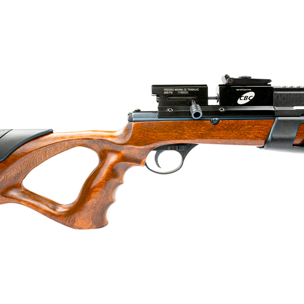 Carabina de Pressão PCP (Pré Charged Pneumatic) com coronha vazada Thumbhole, em madeira natural. É uma linda carabina PCP com design tático muito bonito! Super confortável! Com um excelente desempenho, precisão e potência.