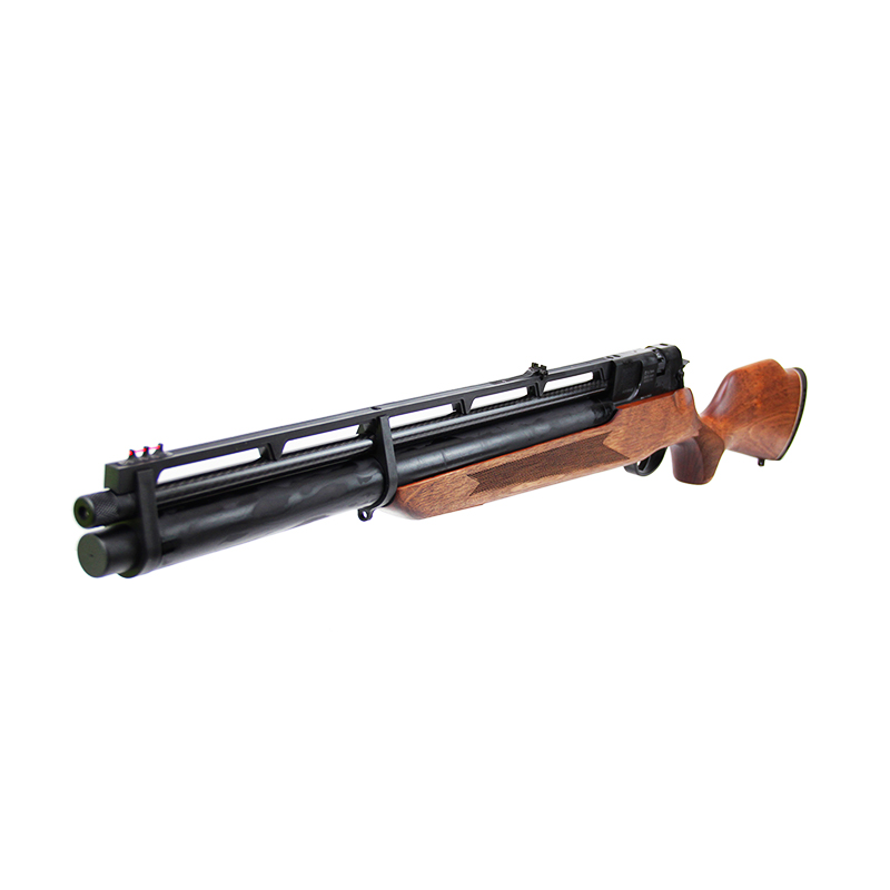 Com uma coronha de madeira natural (tipo Monte Carlo) com soleira de borracha e cano raiado de alta precisão com revestimento de fibra de carbono a nova Carabina PCP da Rossi é uma novidade muito aguardada no mercado.