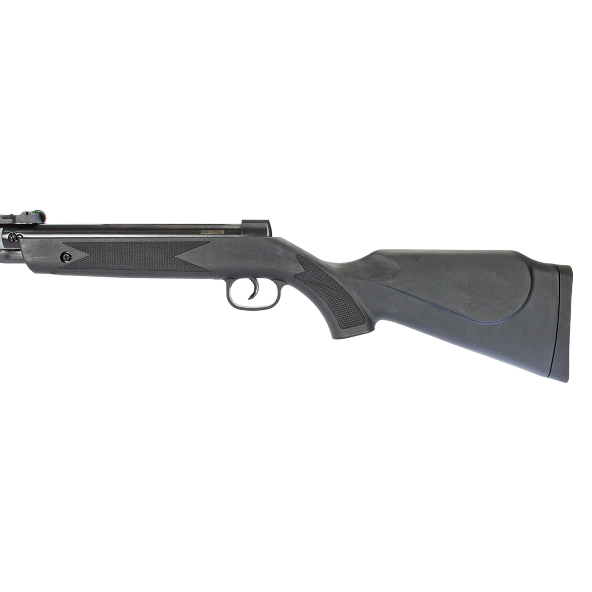 Gatilho em metal, alça de mira TRUGLO com fibra óptica e regulagem horizontal e vertical.