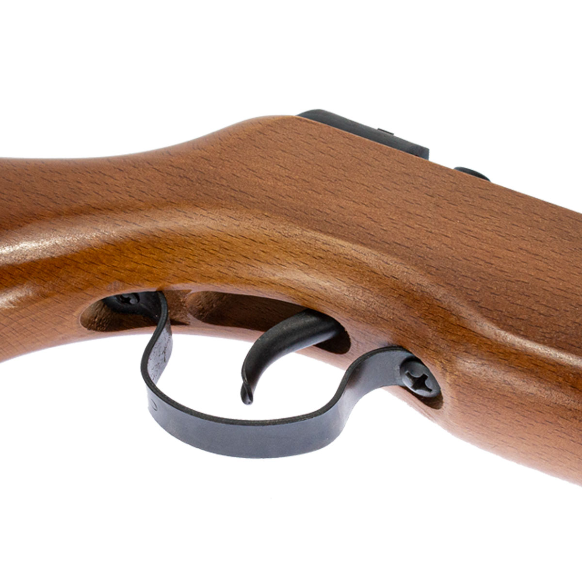 Possui cano raiado de 405mm. Alça e massa de mira com fibra óptica, sendo a alça de mira com regulagem e massa de mira com túnel. Sua coronha é em madeira, proporcionando um design incrível nessa carabina.