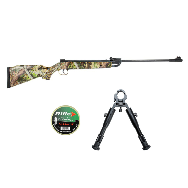 CARABINA HUNTER CAMUFLADA + BIPÉ + CHUMBINHO