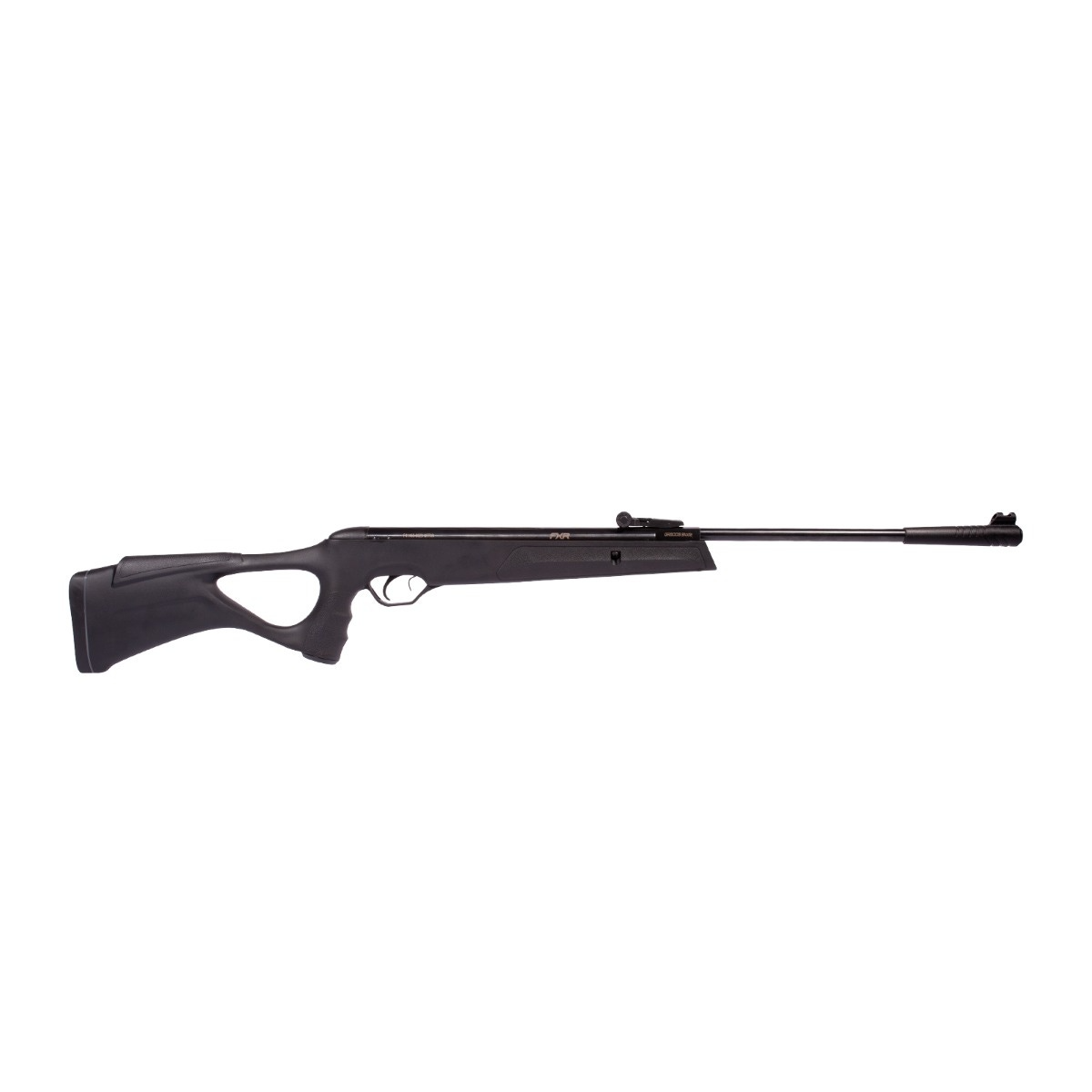 Carabina monotiro com engatilhamento Break Barrel (quebra cano) também conhecida como cano basculante.