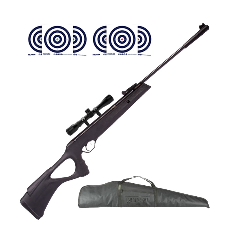 CARABINA NITRO GÁS GR800S BLADE ARTEMIS 5.5 MM + LUNETA 4X32 ROSSI 11MM + CAPA PARA CARABINA DE PRESSÃO COM LUNETA + ALVOS