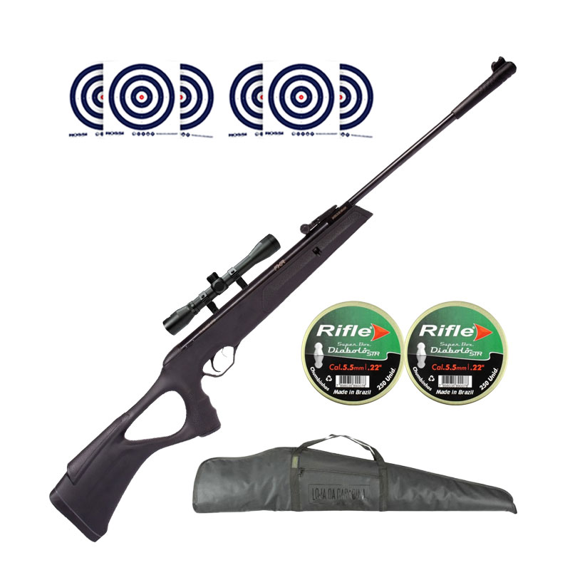 CARABINA NITRO GÁS GR800S BLADE ARTEMIS 5.5 MM + LUNETA 4X32 FXR + CHUMBINHO RIFLE 5.5MM + CAPA UNIVERSAL DROME + ALVOS