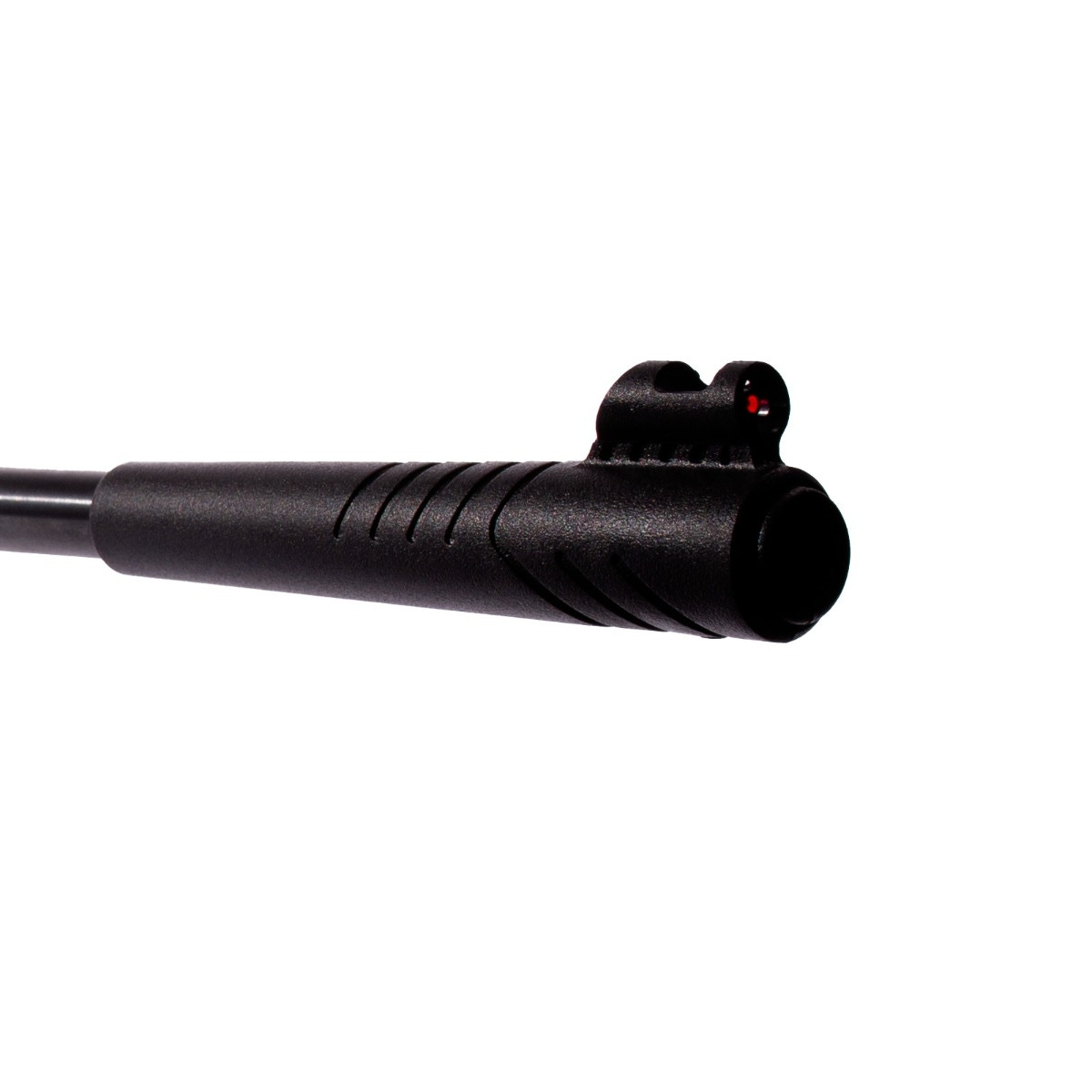 Muzzle Break integrado para evitar o contato das mãos no cano da arma. Ele auxilia no basculamento e também da um toque muito mais bonito na carabina!