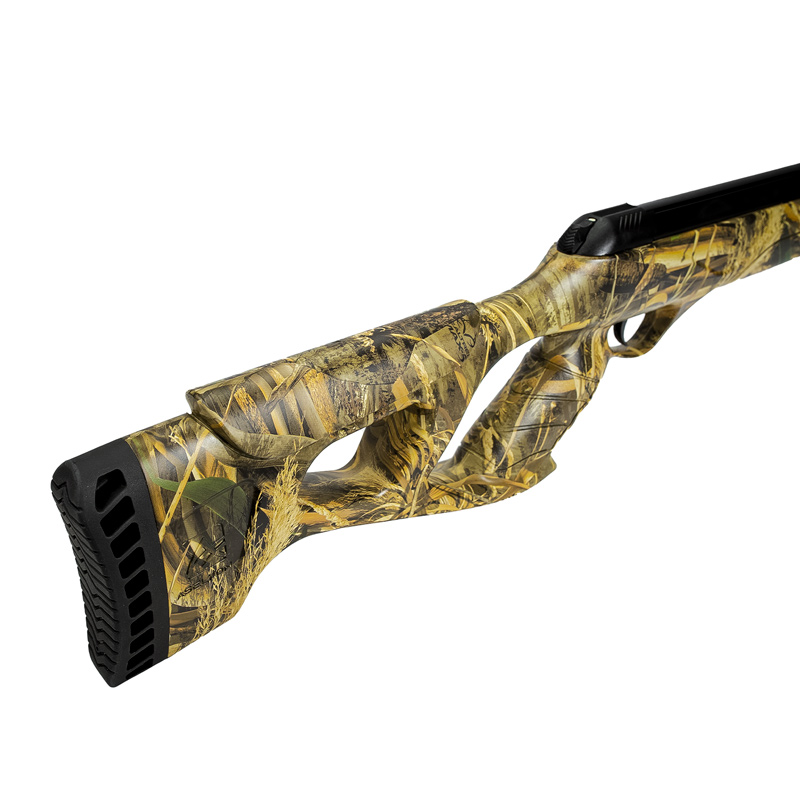Potente, resistente, precisa e de excelente desempenho, tudo isso aliado a um design moderno muito bonito e elegante com coronha toda camuflada e detalhes na cor preta.