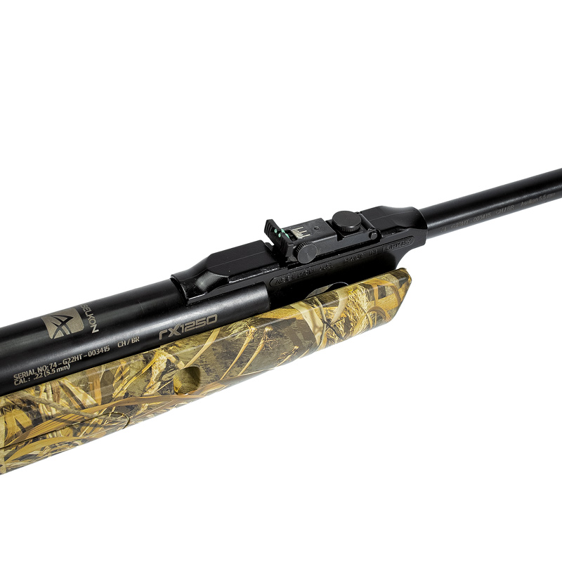 Carabina de pressão RX 1250 Aselkon camuflada no calibre 5.5 mm (.22) com sistema por mola helicoidal.