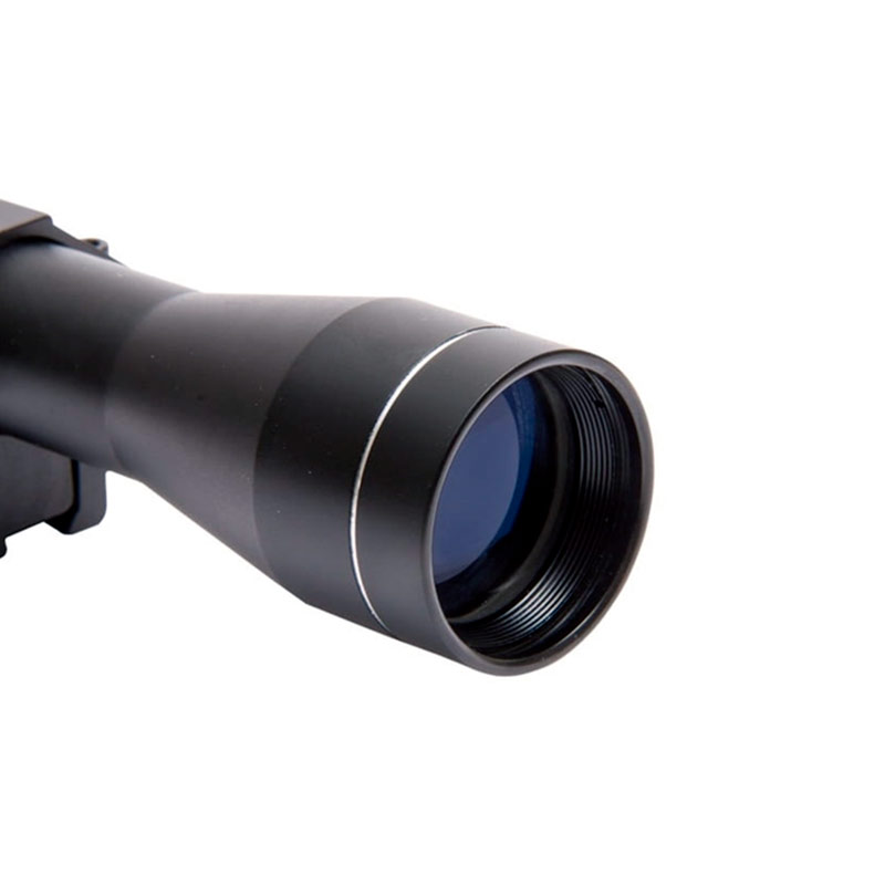 Longo alcance do foco, sendo um zoom fixo de 4x com uma objetiva de 32mm de diâmetro.