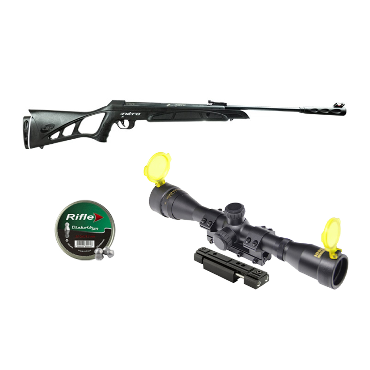 NITRO X 1000 CARABINA CBC 5.5 + LUNETA 4X32 GOLD CROWN ROSSI + MOUNT + CHUMBINHOS