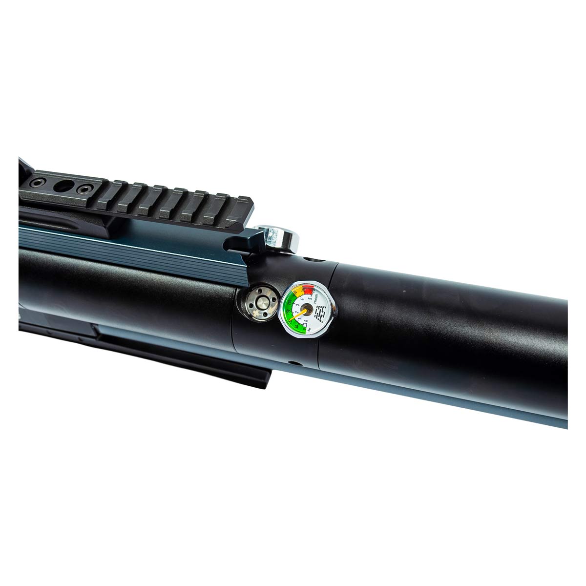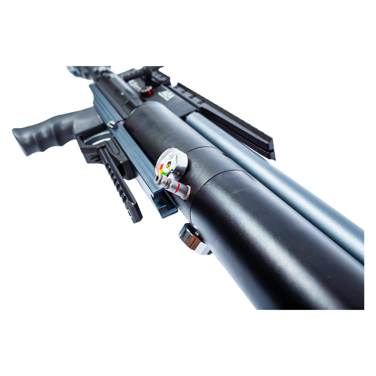 O sistema PCP utiliza cilindro de ar com capacidade de 350 cc, operando com pressão máxima de enchimento de até 300 bar (4500 PSI). Essa configuração garante grande reserva de ar e excelente autonomia para sessões prolongadas de tiro.