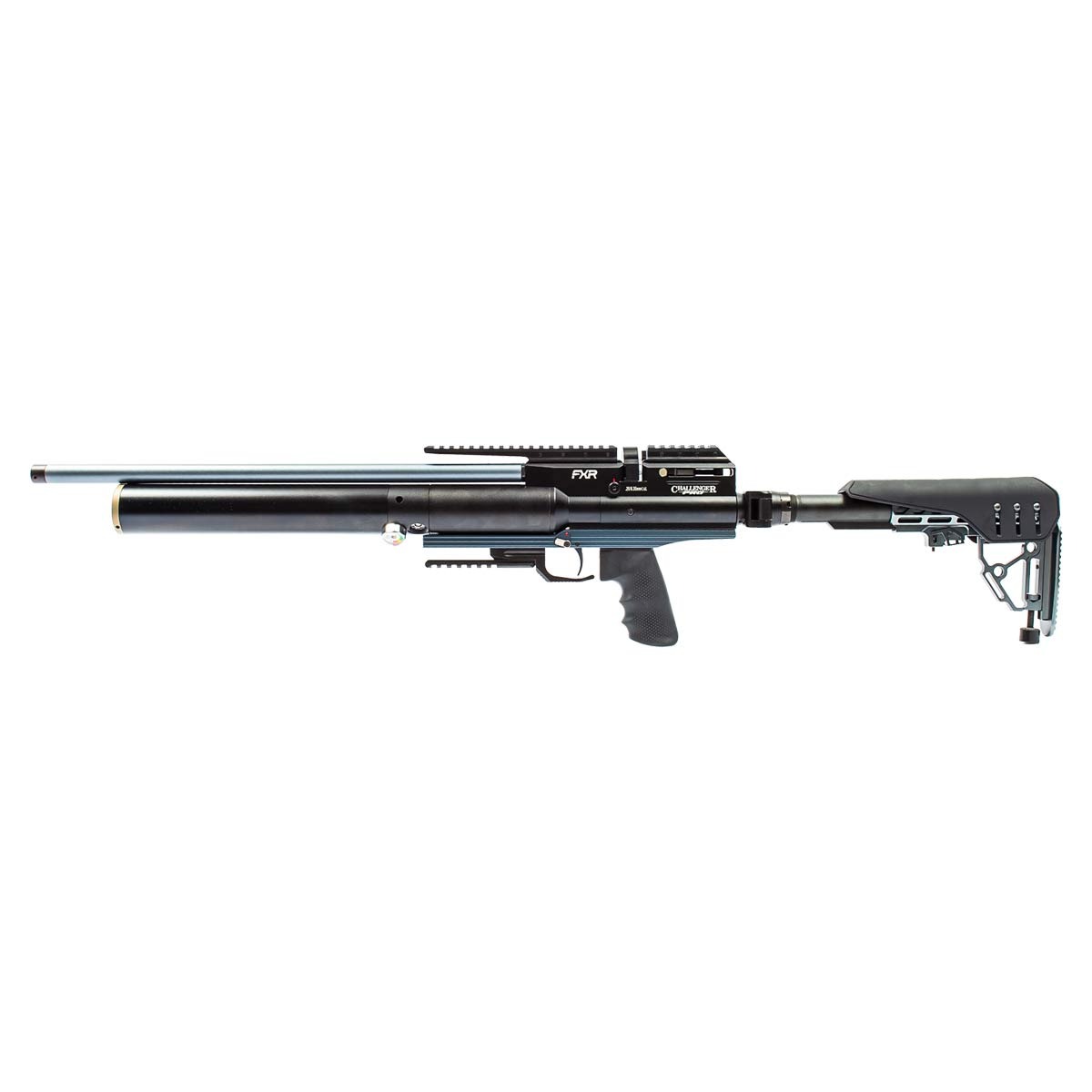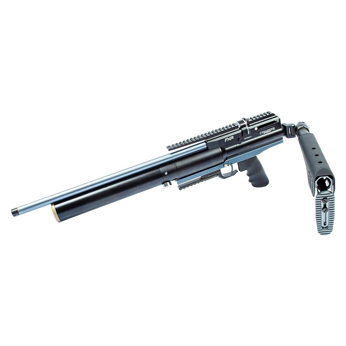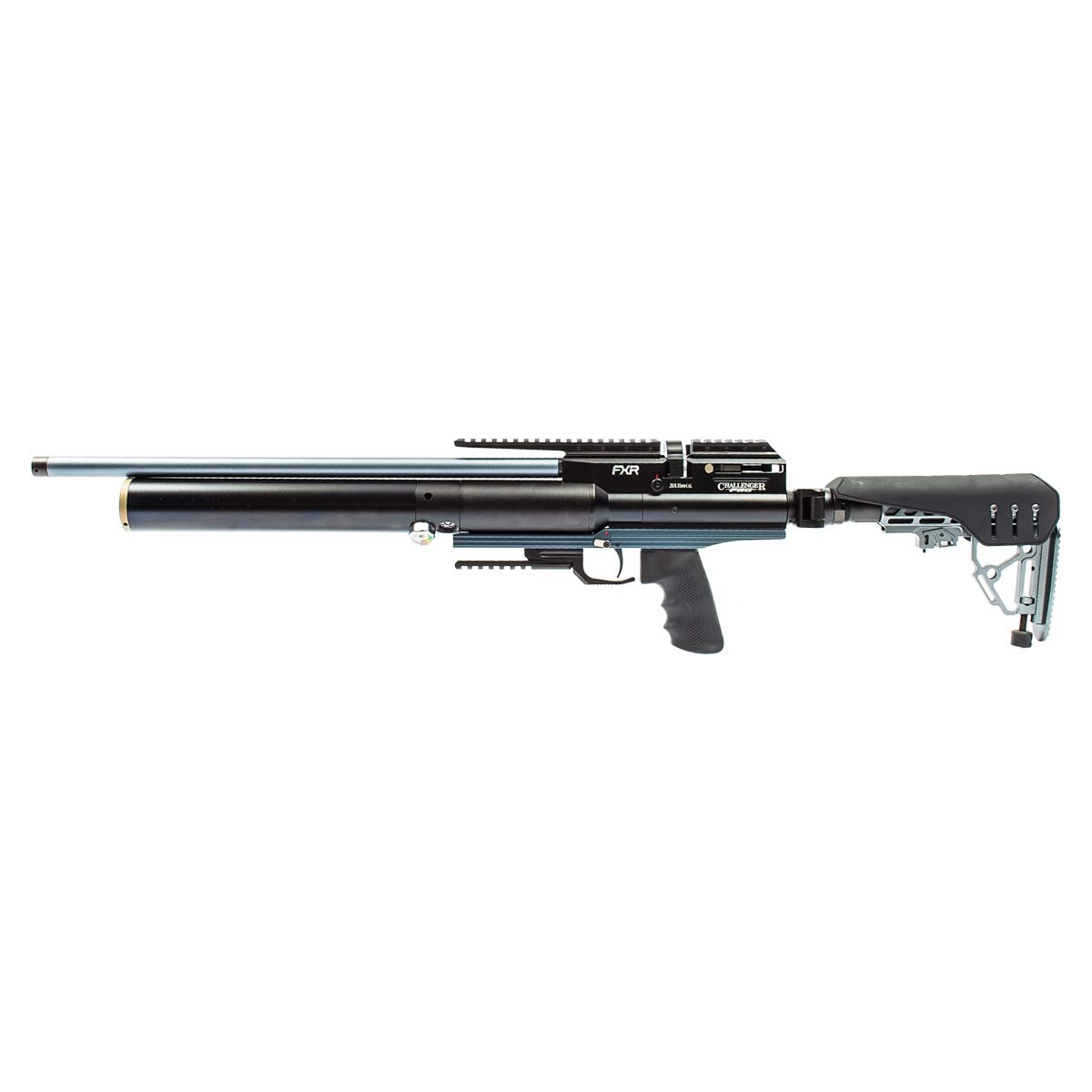 Com comprimento total aproximado de 114 cm e peso de cerca de 3,72 kg, a Challenger Pro oferece excelente equilíbrio entre robustez, estabilidade e controle durante os disparos.