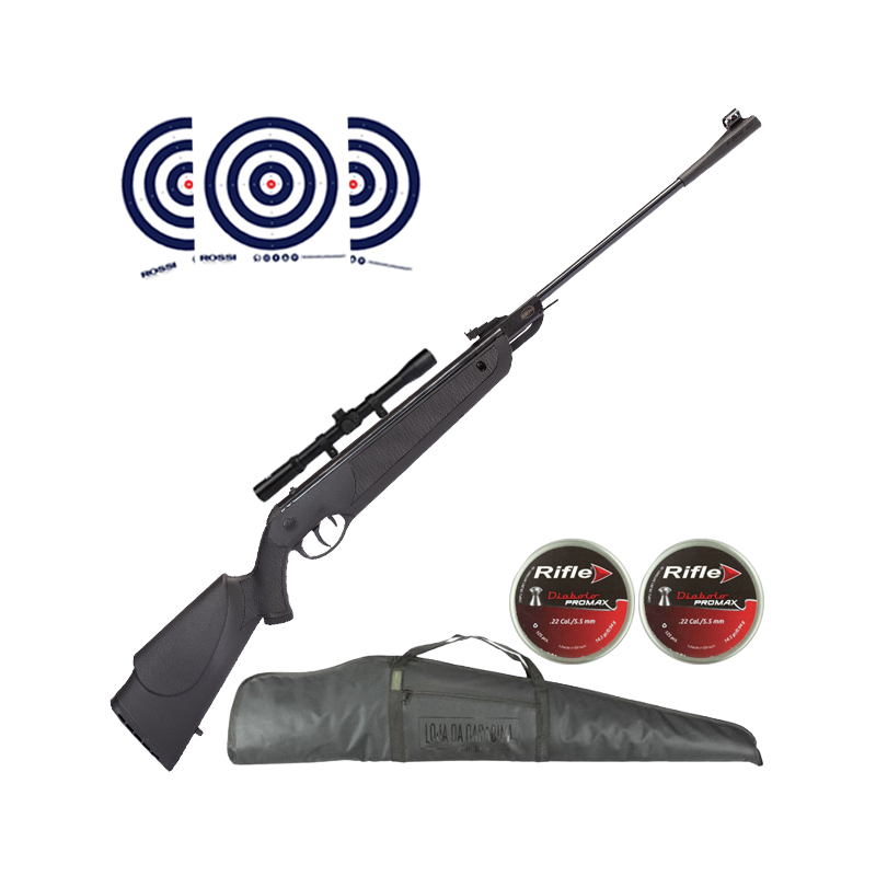 DIONE 5G CARABINA ROSSI GÁS RAM 5.5 + LUNETA 4X20 + CAPA + CHUMBOS + ALVOS