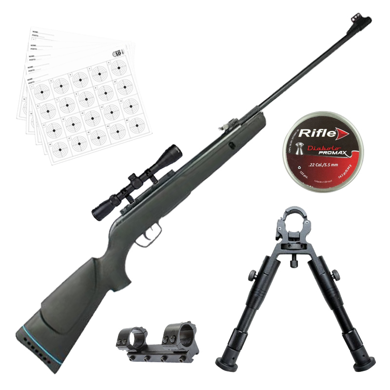 CARABINA NITRO IGT BIG CAT 2020 5.5MM + LUNETA 4X32 + CHUMBINHOS + BIPÉ + SUPORTE PARA LUNETAS + ALVOS