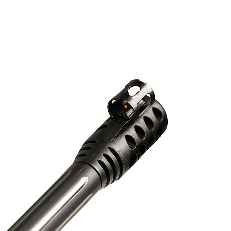 Possui mira aberta com fibra óptica para maior precisão e visibilidade do alvo em curtas distâncias.