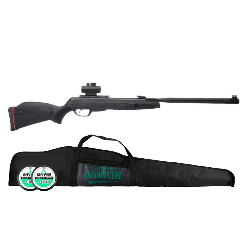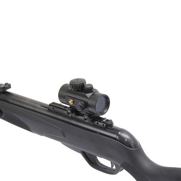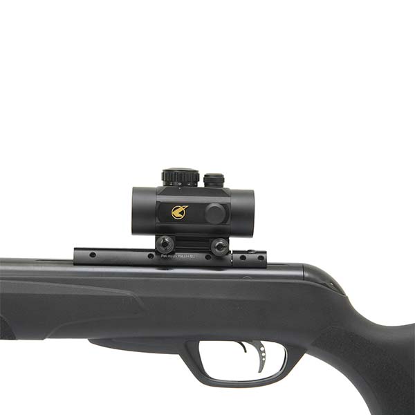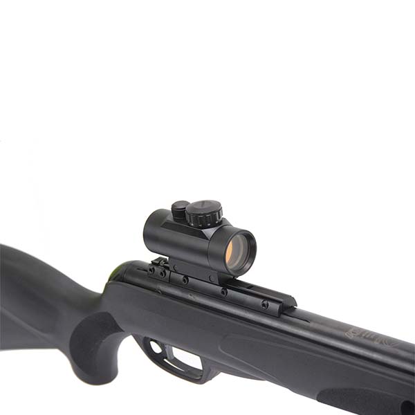 Acompanha Red dot 1x30 Gamo, que pode ser instalado facilmente no trilho 11mm dessa carabina de pressão.